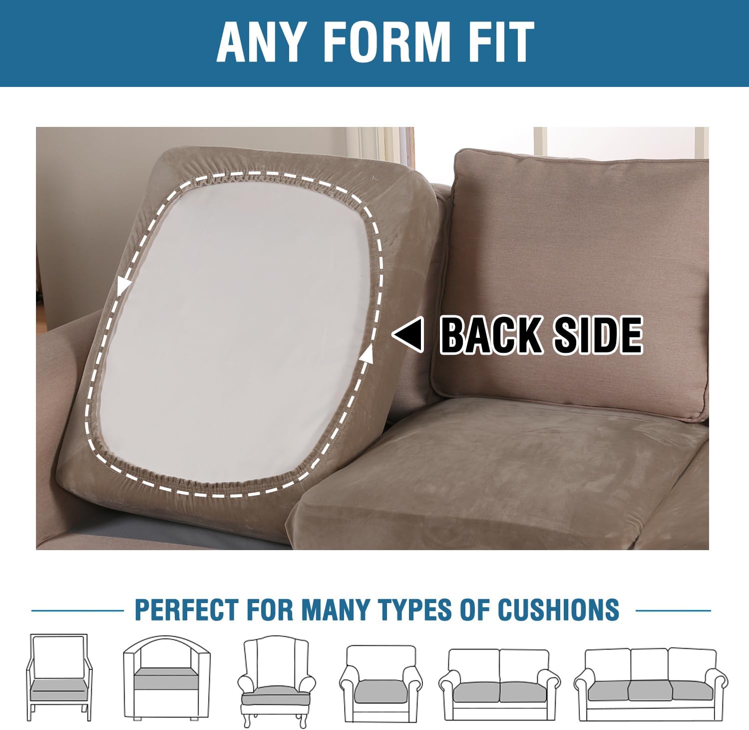 H.VERSAILTEX Velvet Stretch Couch Cushion Cover Plush Cushion Slipcover for Chair Loveseat Sofa Cushion Furniture Protector Seat Cushion Sofa Cover (2 Piece Large Sofa Cushion Covers, Mocha)