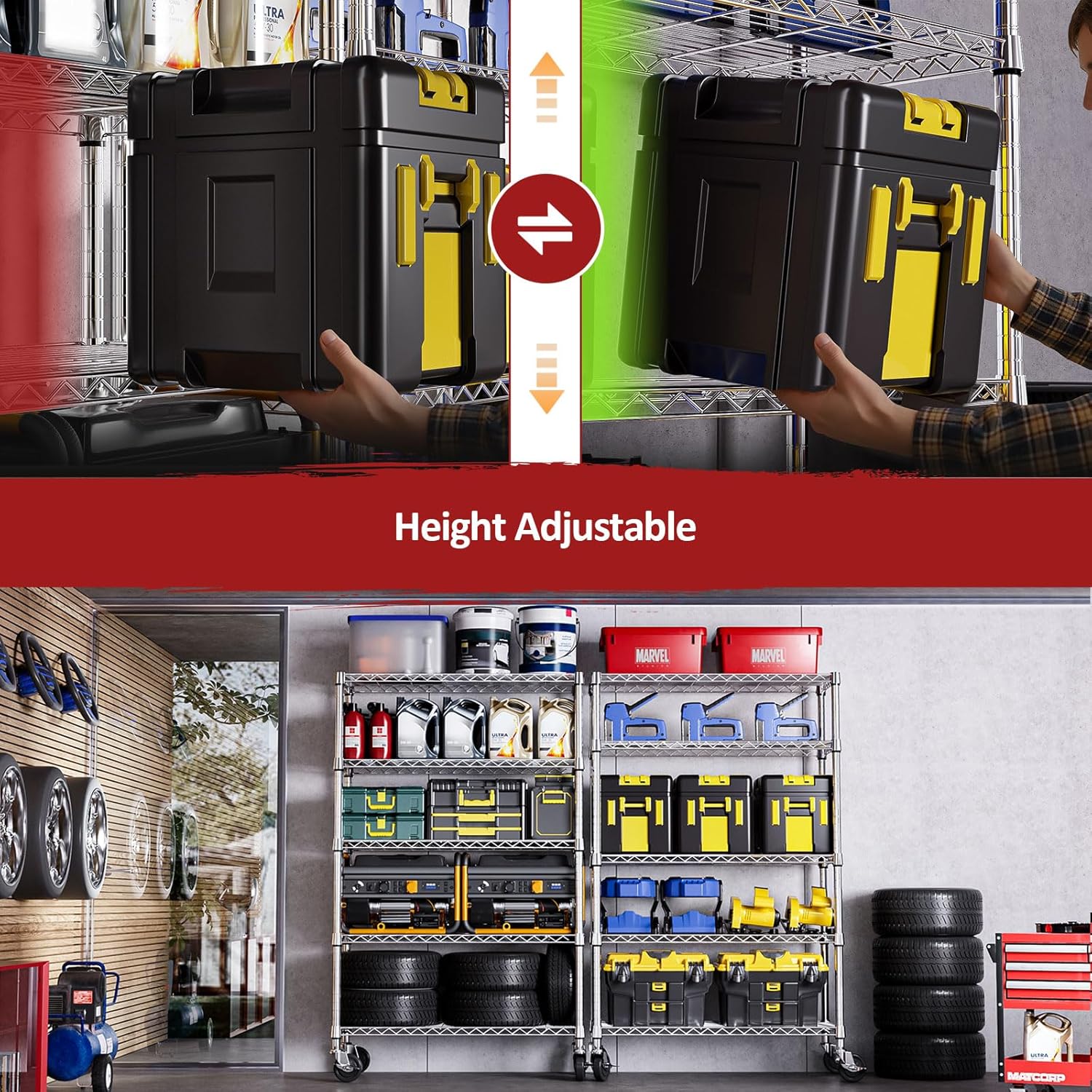 IZEUK 5-Tier Storage Shelving Unit with Wheels, Adjustable Heavy Duty Steel Wire Rack Organizer (Chrome, 17.7" D x 47.2" W x 76.7" H, 1750 lbs Capacity) for Garage, Kitchen, Pantry, Laundry, Basement