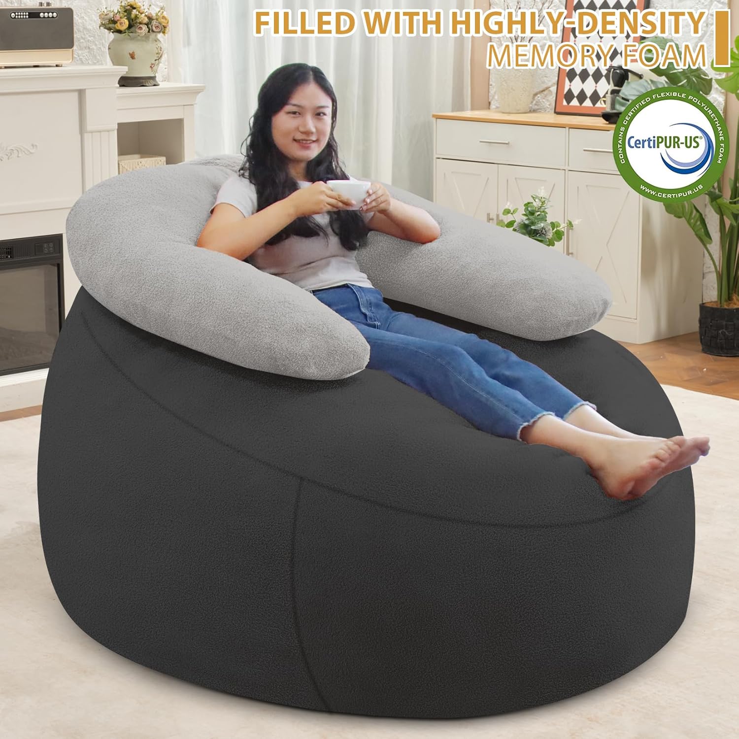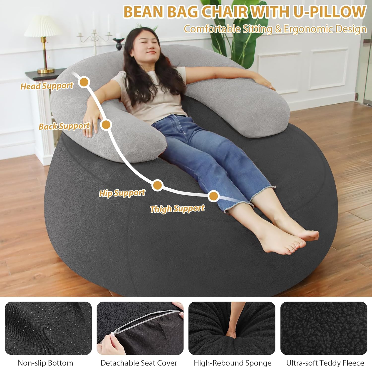 - 1 Pillow for 2 Uses: As a shining star in the bean bag chairs, our beanbag chair is equipped with 1 U-shaped pillow, which can not only be placed behind to meet your rest needs, but also can be placed in front as a reading pillow.