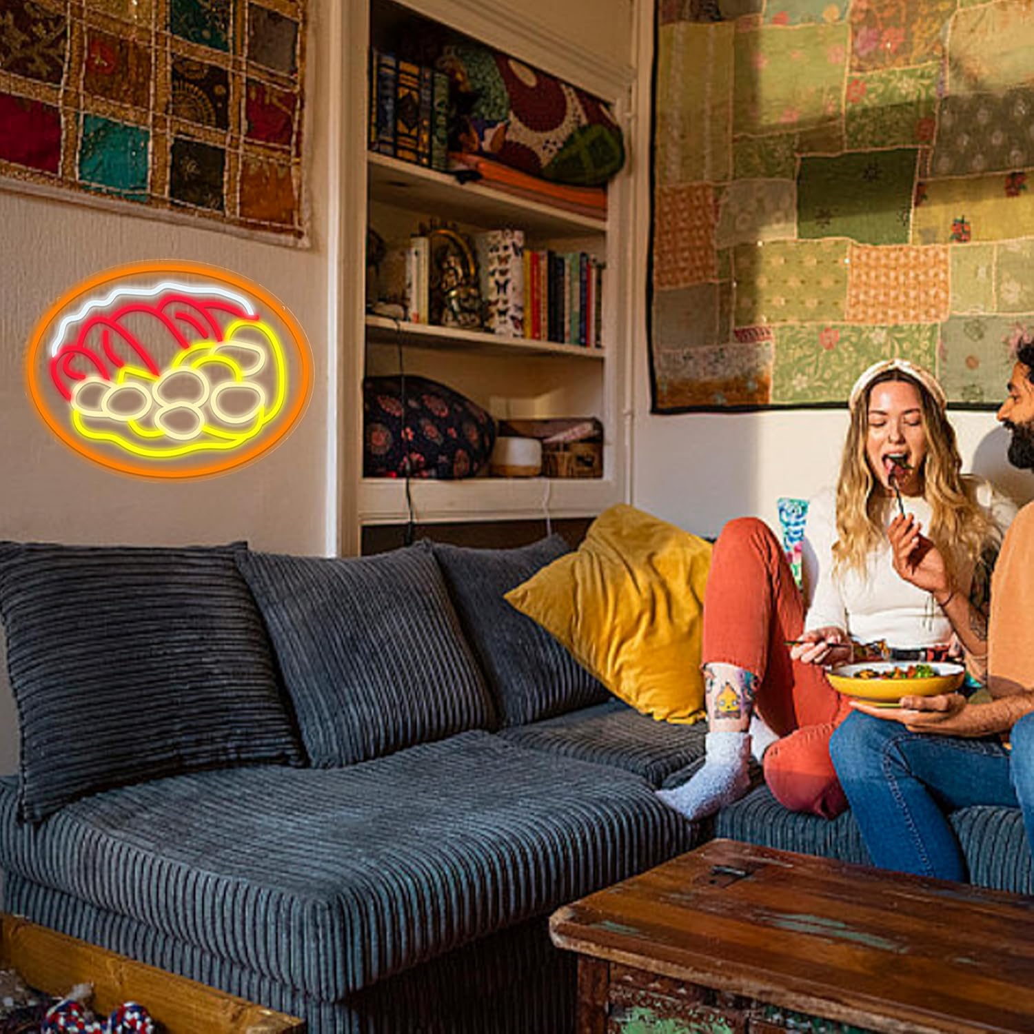 - Food neon sign: Vivid curry meat and vegetable neon light patterns, using yellow, orange, and red to echo the spiciness and deliciousness of curry, can arouse customers' interest and guide them into a world full of spices and flavors.