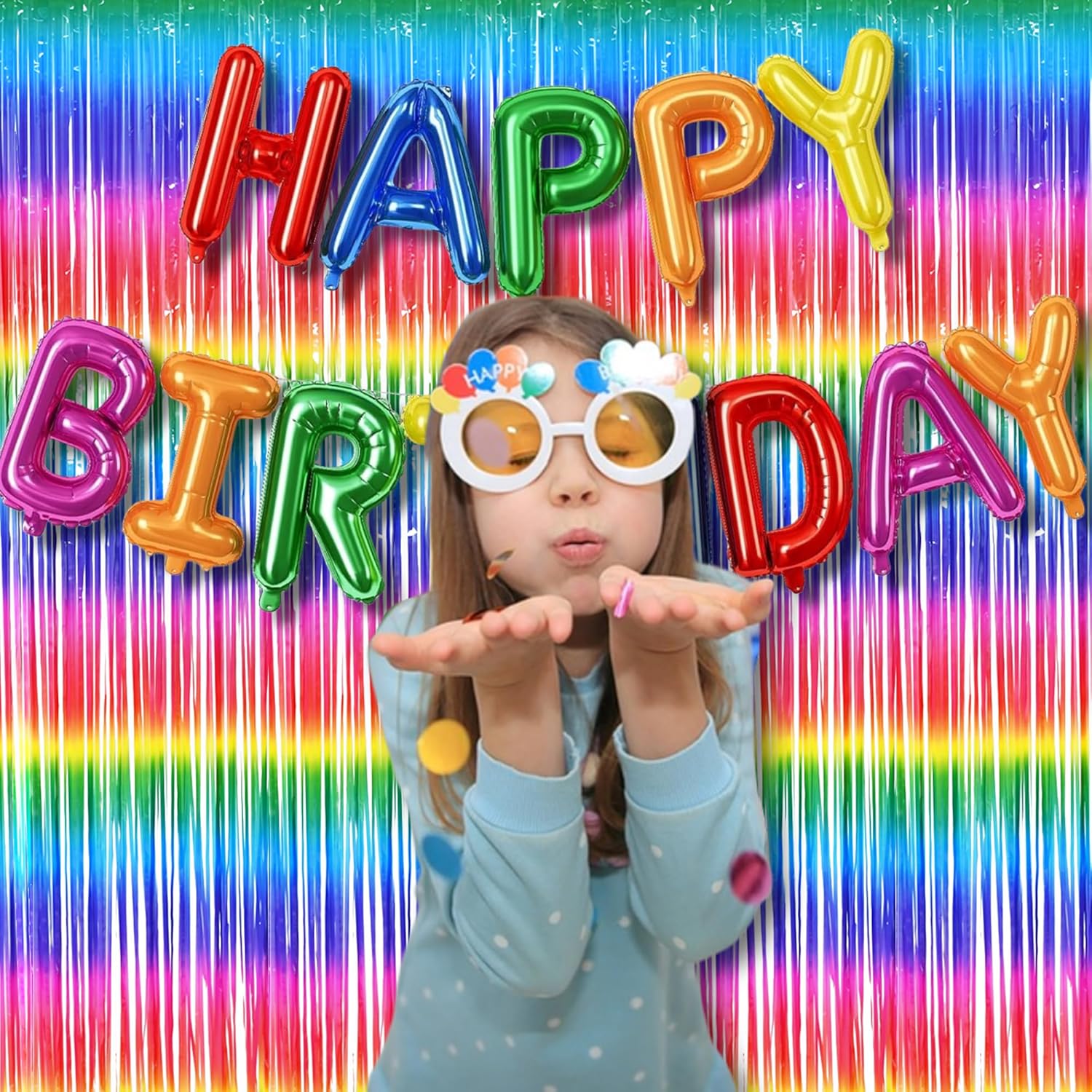 BRAVESHINE Fringe Backdrop Tinsel Foil Curtains - 2 Pack Colorful Metallic Streamers Backdrops for Doorway Decor/80's/90's/Dance/Graduates/Rainbows-Theme/Candylands/Kids Birthdays Party Decorations