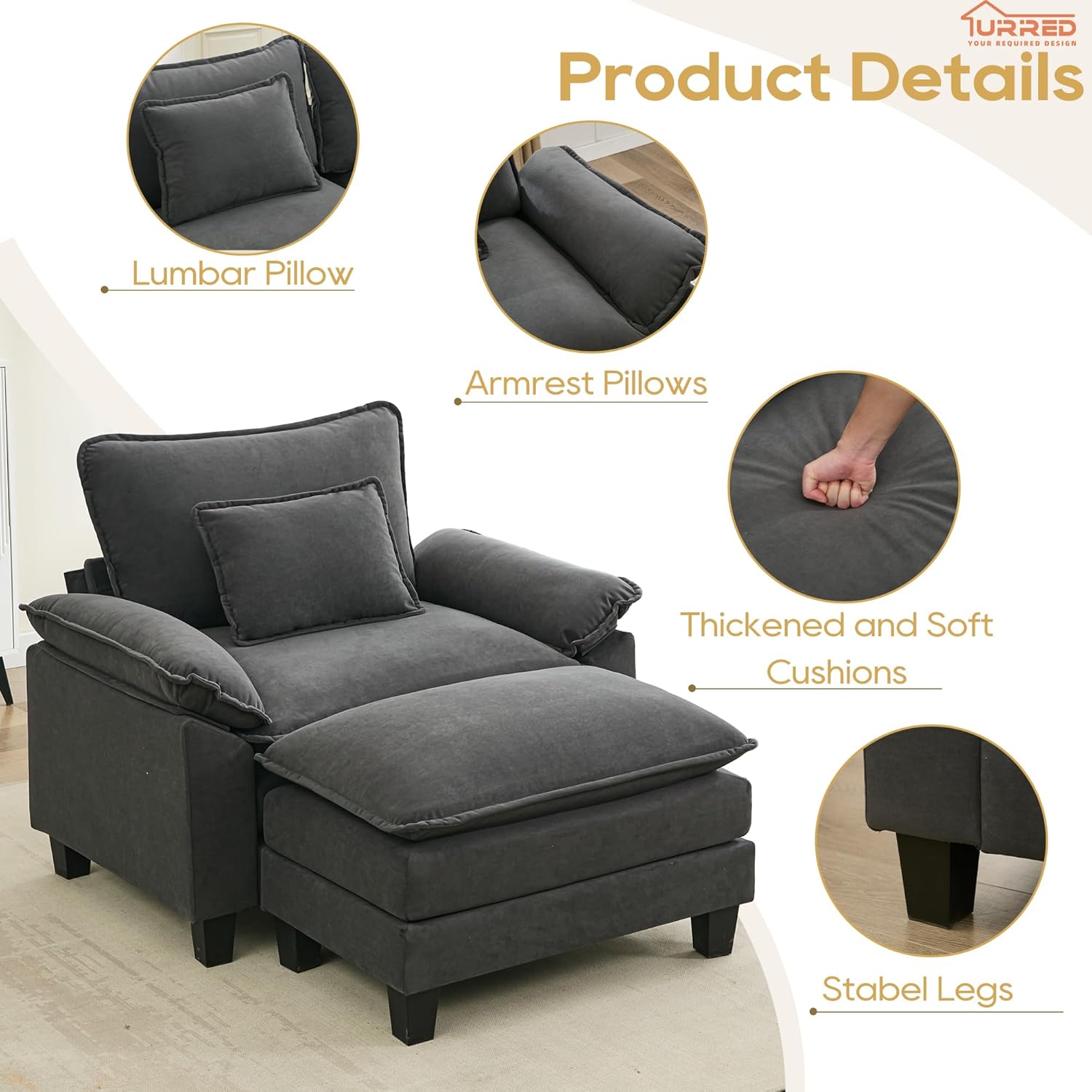 URRED Modular Sectional Sofa Comfy Cloud Couch, Modern Chenille Sofa Sleeper Deep Seat Couches with Ottoman/Pillows for Living Room (Dark Gray, 53''- Ottoman)