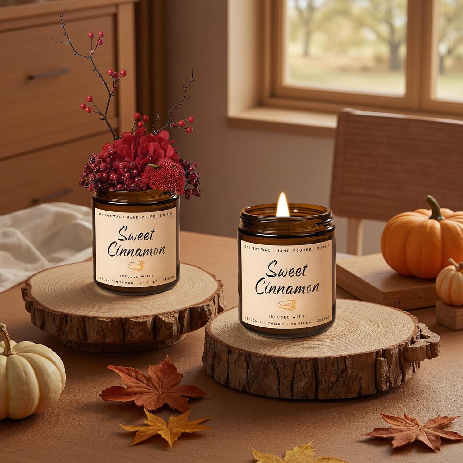 - 🕯️Scented Candles for Autumn: Embrace the beauty of the season with our Fall Candle, featuring a delightful Sweet Cinnamon Scented Candle for Autumn. Infused with warm cinnamon spice and hints of apple, this candle is perfect for welcoming autumn into your home.