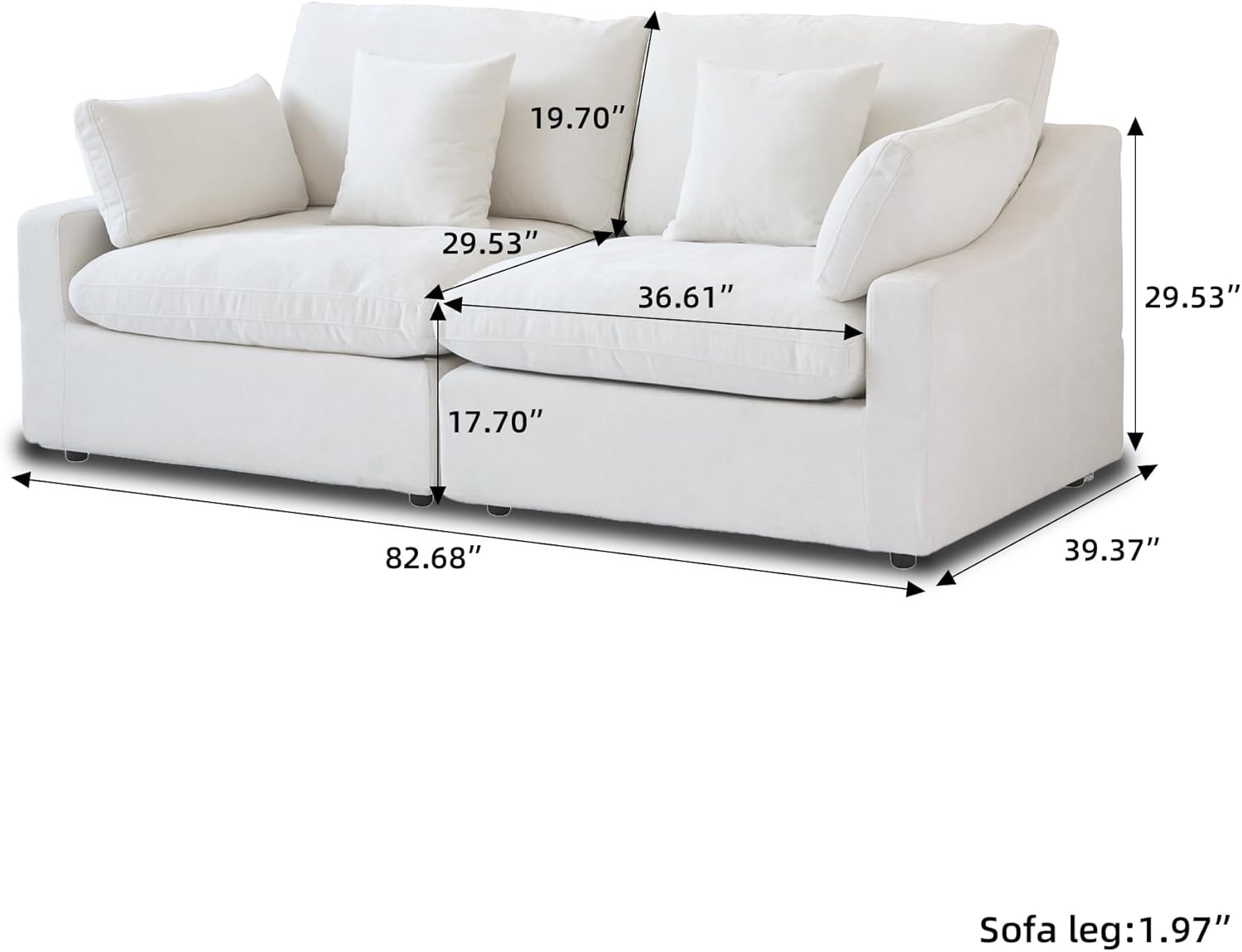 - β [Size Information] Overall Size: 82.68"L x 39.37"W x 29.53"H. The cushion cover, backrest cover, and frame cover of the sofa can all be removeable and washable. You can easily keep the sofa clean.