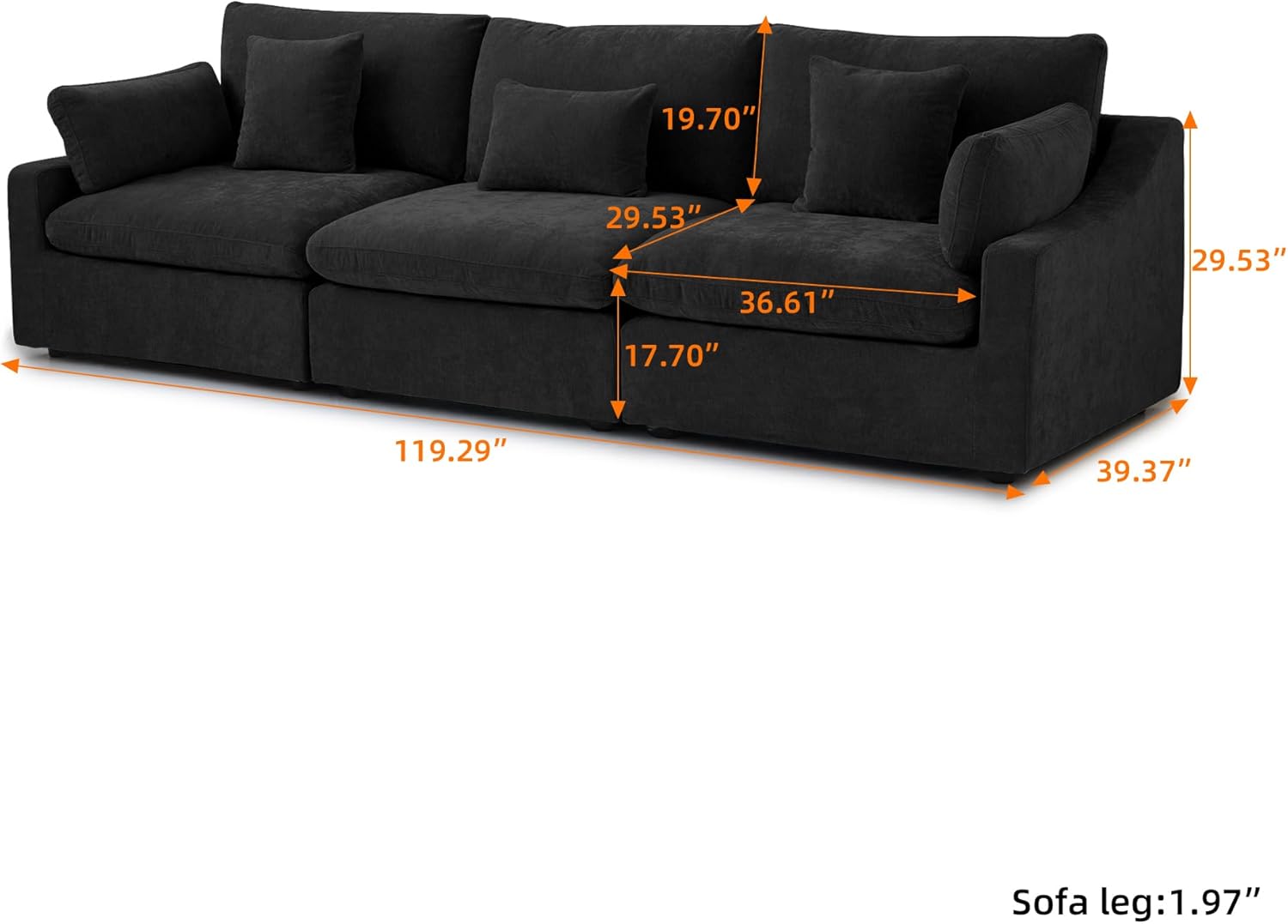 - β [Size Information] Overall Size: 119.29"L x 39.37"W x 29.53"H. The cushion cover, backrest cover, and frame cover of the sofa can all be removeable and washable. You can easily keep the sofa clean.