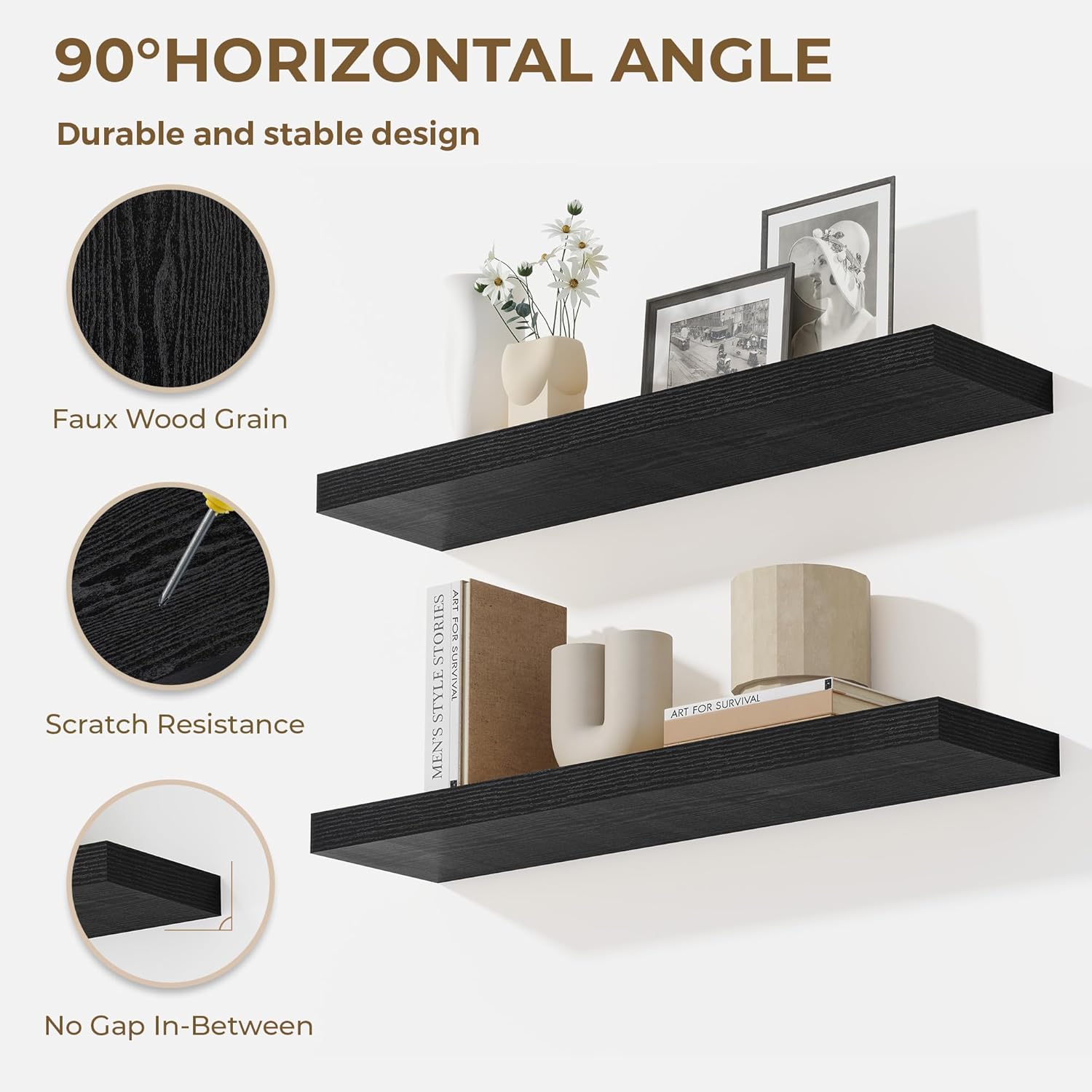 - Sturdy & Secure design: These 55-inch floating shelves feature a durable, concealed mounting bracket that offers reliable support for your belongings. Engineered for hassle-free and stable installation, each shelf includes all the required hardware to ensure a strong, wobble-free hold—perfect for showcasing your favorite decor, photos, or everyday items with confidence and style.
