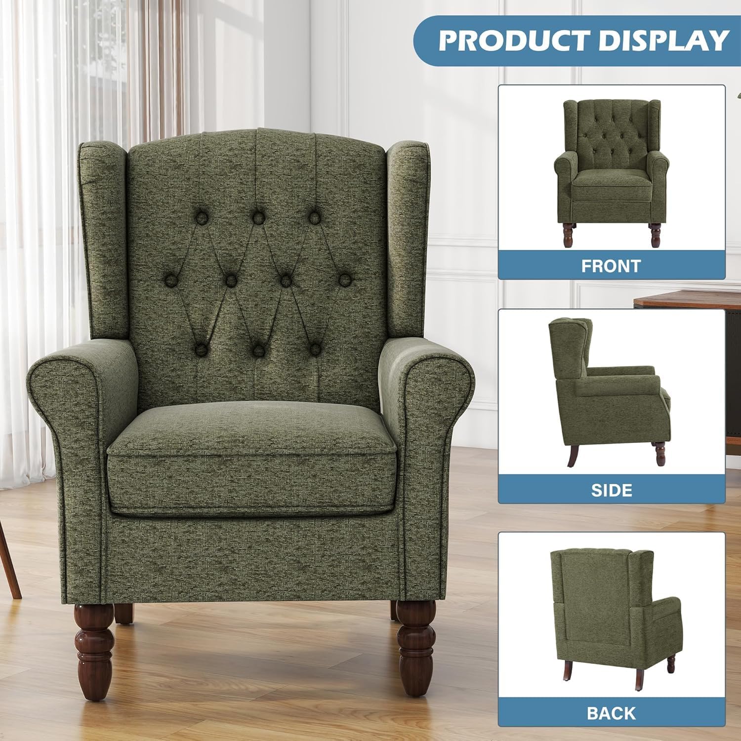 - Modern Design & Wide Application - Our high backrest reading chair has the look, feel, and design of contemporary style with its rolled arms, tapered gourd legs and button back. Simple and chic look, add more vitality to your room, ideal for waiting room, living room, bedroom, dressing room, dressing room, office, reception room.