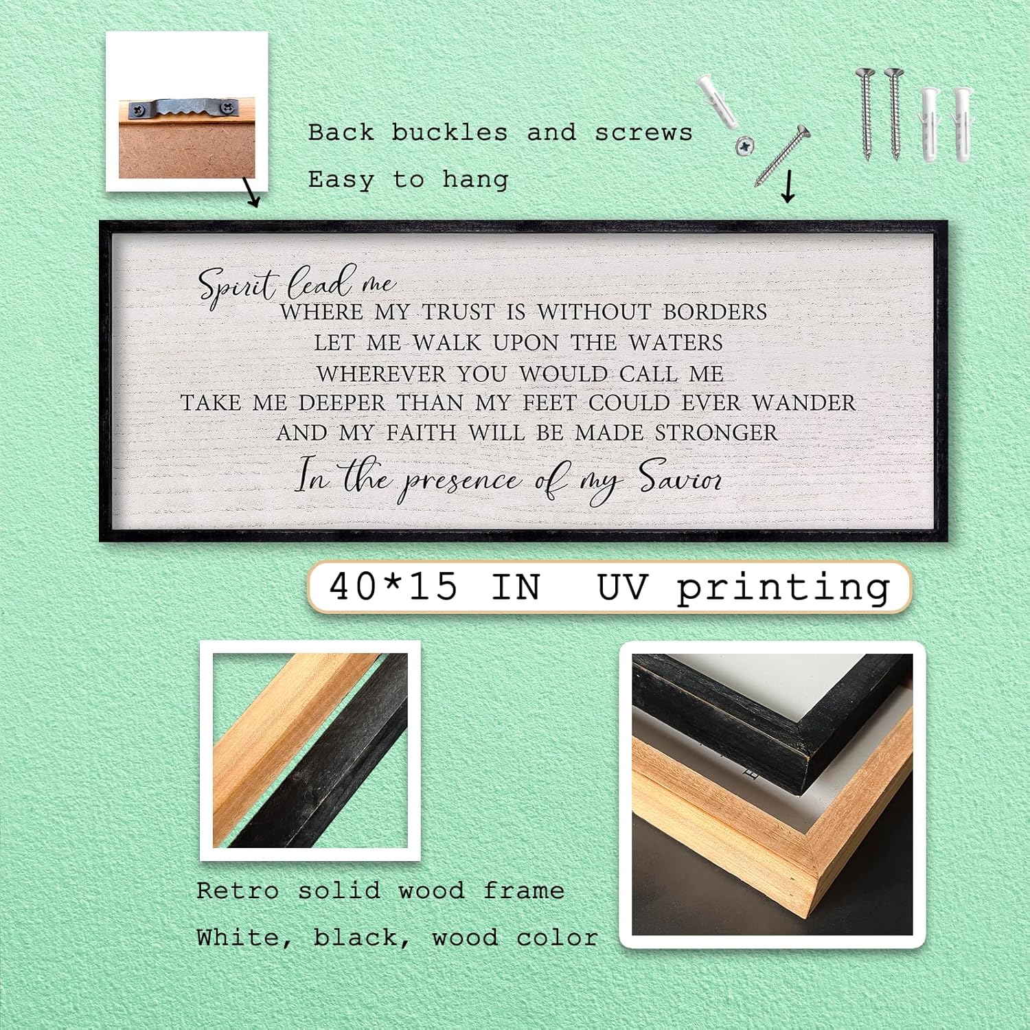 LuZhiQiang Spirit Lead Me Wall Art Decor 40"x15" Christian Scripture Sign Large Inspirational Quote Bible Verse Hanging Wooden Framed (Black)