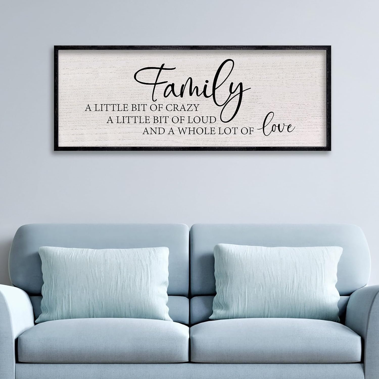 LuZhiQiang Family A Little Bit of Crazy Sign Wall Decor 40"x15" Large Family Signs Wood Framed Hanging Wall Art (Black)