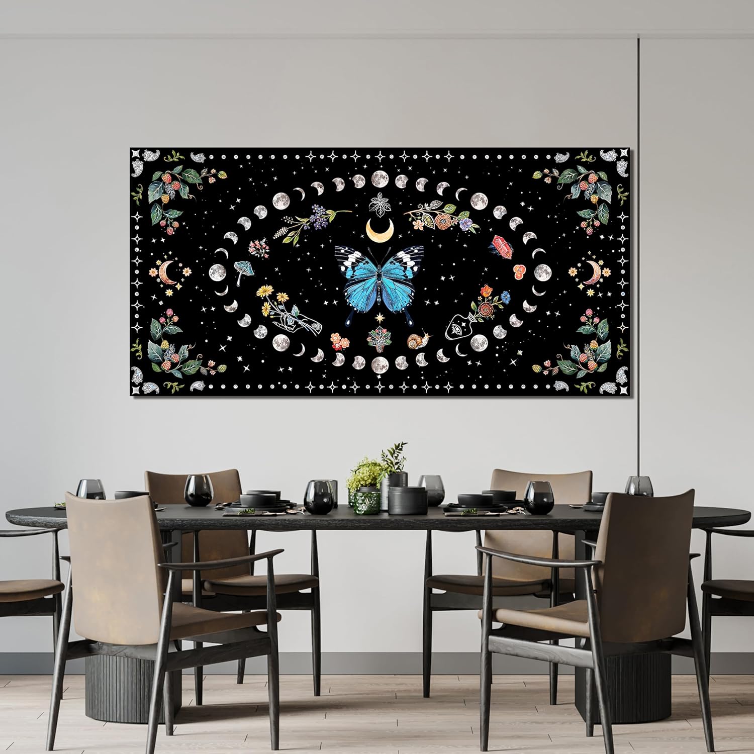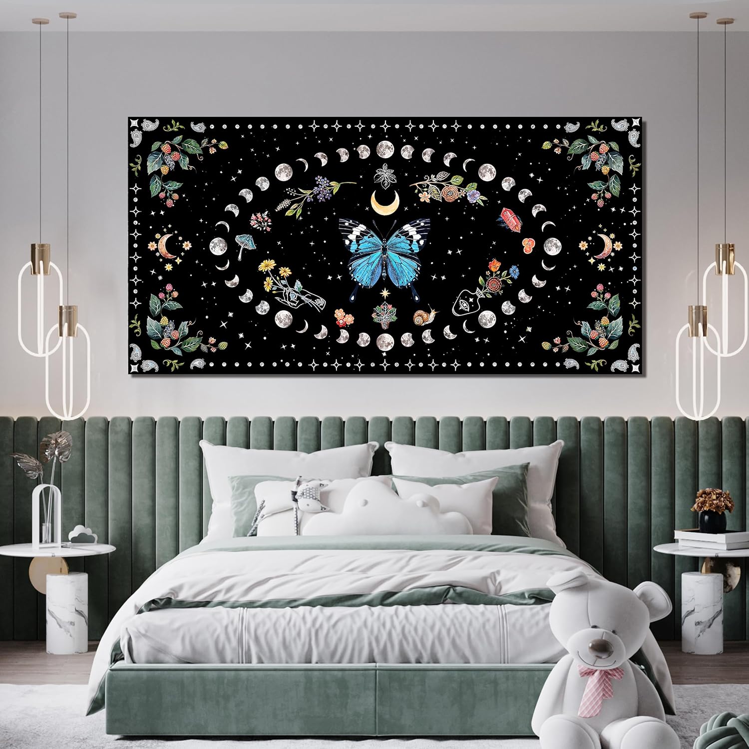 Canvas Wall Art Prints Blue Boho Wall art Decor Canvas Art Wall Decor Wall Pictures for Living Room Vintage Butterfly Wall Art Moon Flower Abstract Artwork for Walls Home Bedroom Decor 20" X 40"