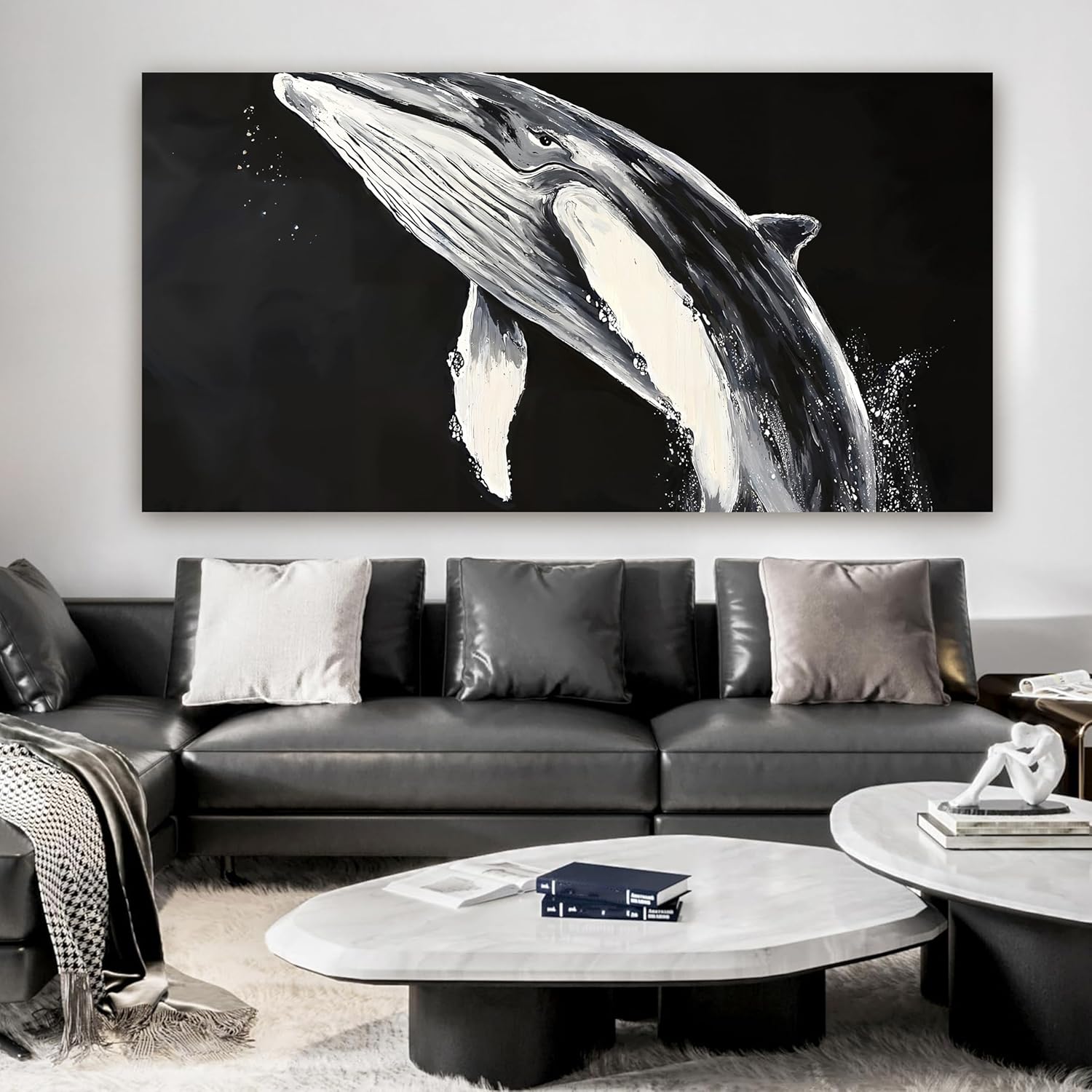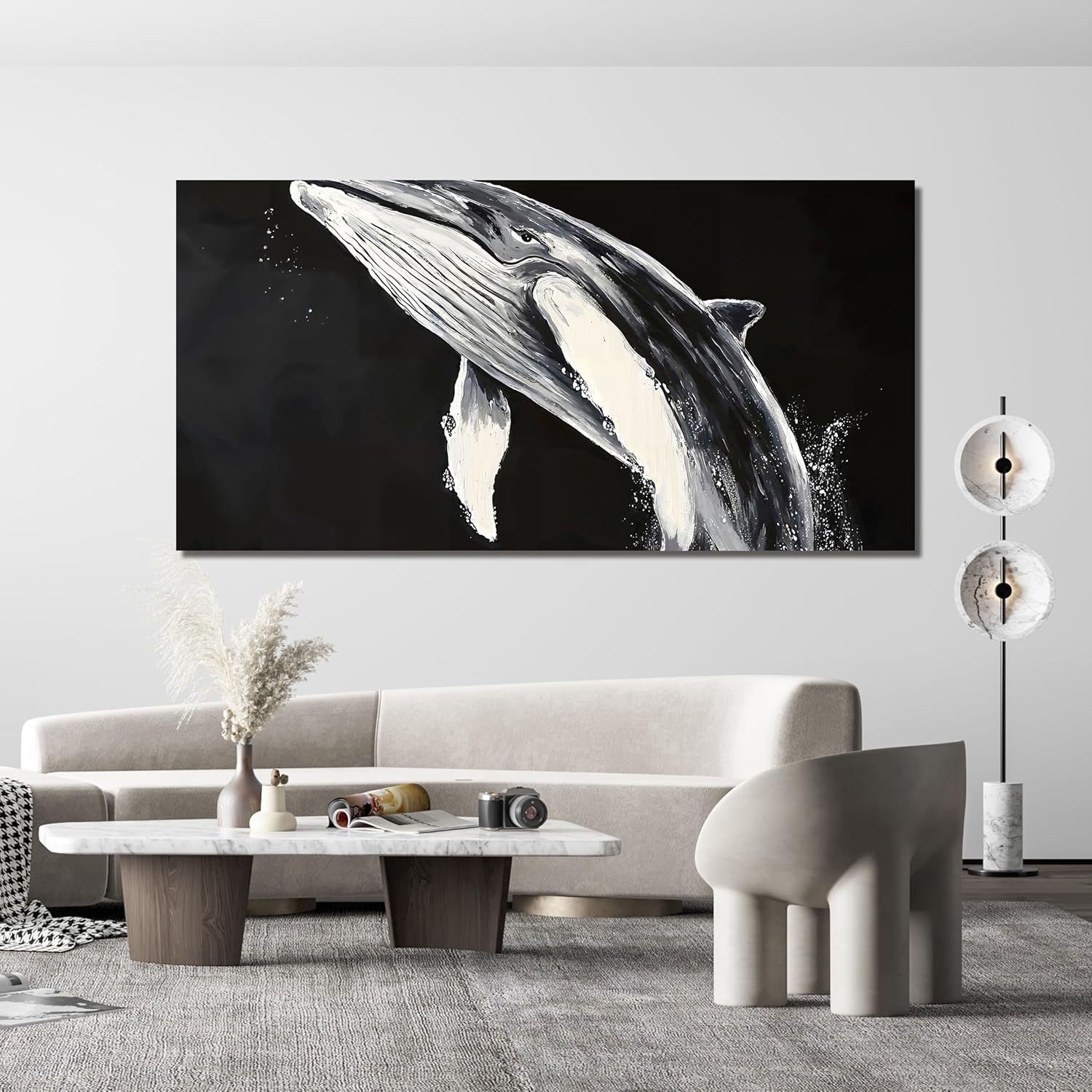 AIXMGSJS Canvas Wall Art Decor Large Black and White Wall Art Prints Minimalist Wall Art for Living Room Large Modern Canvas Art Wall Decor Whales Artwork for Walls Home Office Decor 29" X 58"