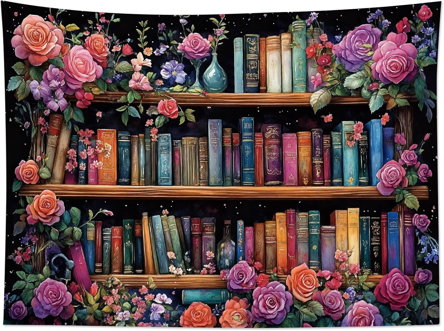 - DESIGN :The Bookshelf Floral Tapestry adopt HD digital printing,Donβt worry about fading,vibrant colorful design will light up your room!