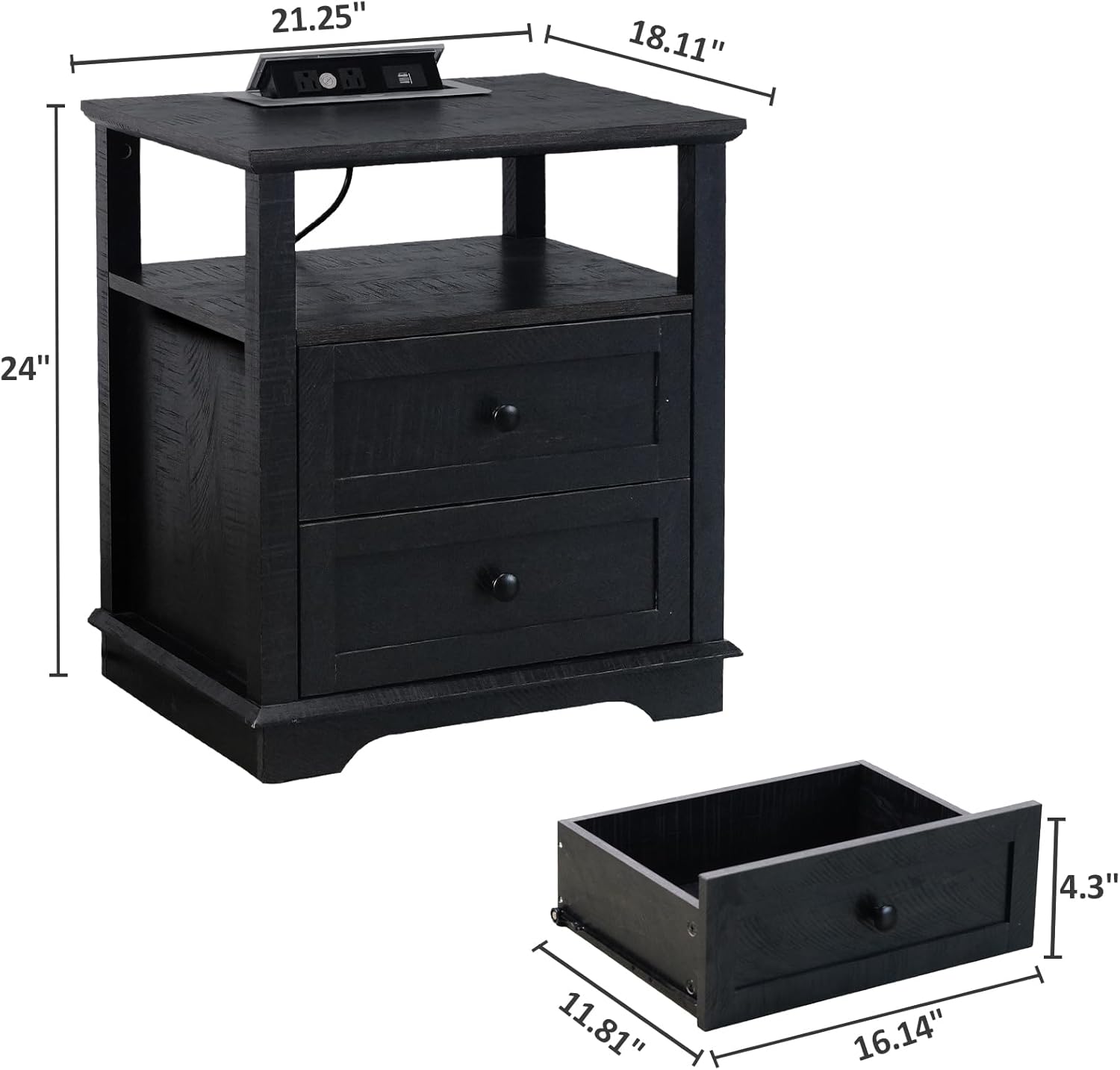 HIFYOBRO Large End Table Set of 2, 2 Drawers and Charging Station, Type-C & USB Port & Power outlets, Wooden End Table, Side Table with Storage for Living Room and Bedroom (Espresso)