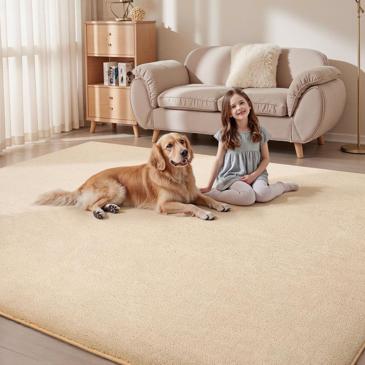 - 【SUPER SOFT FEELING】- The Area Rugs for Living is made of premium short wool coral fleece, The surface is dense and soft, luxurious, skin-friendly,Middle is high resilience sponge can reduce pressure on you feet and enhance the softness.you can freely lie on it to relax or play games with the family.