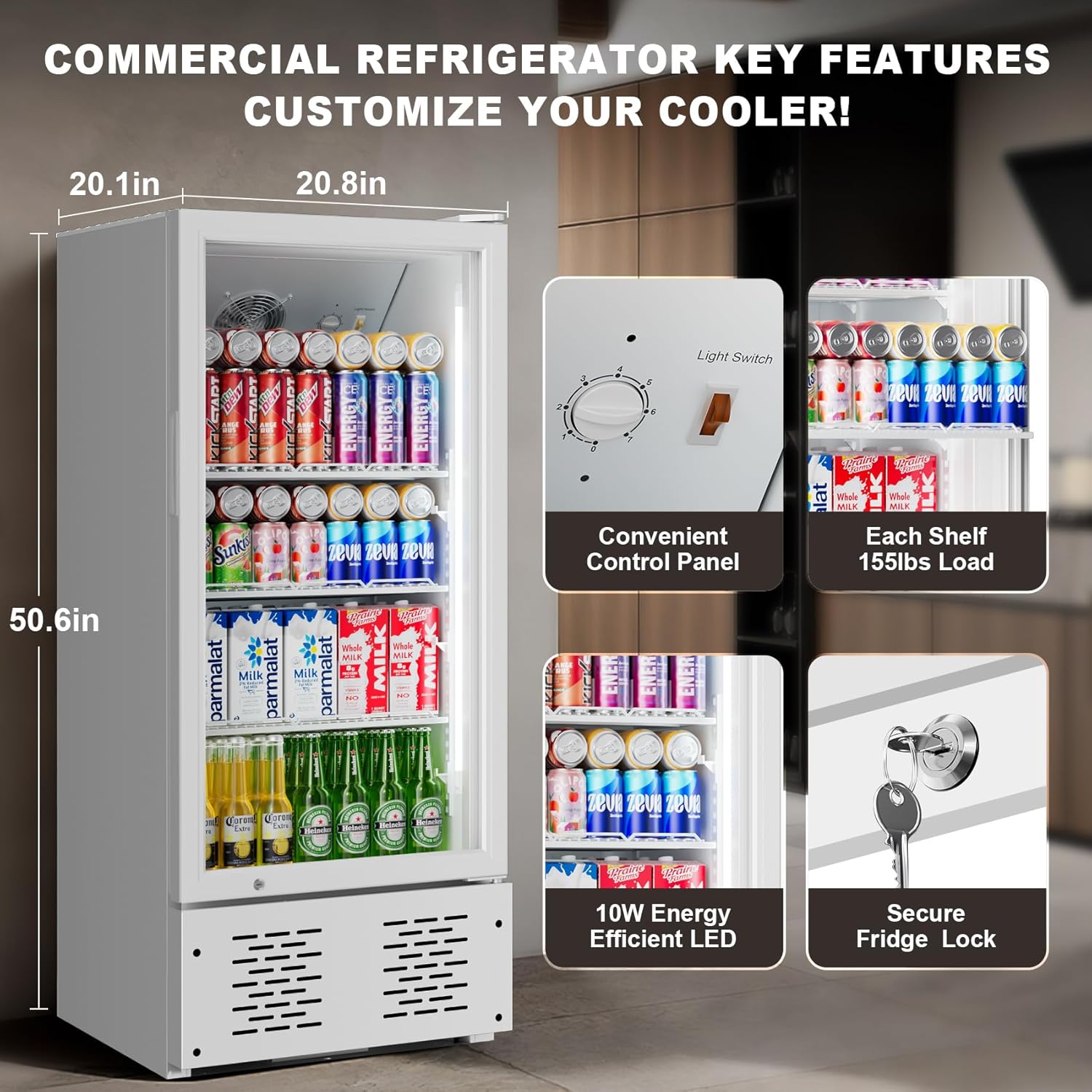 - Optimized Storage Capacity and Customizable Design-Maximize your beverage storage efficiency with this ‌high-capacity commercial beverage cooler‌, engineered to hold up to ‌380 cans (250ml) or 230 bottles (330ml)‌. Featuring ‌3 adjustable tempered glass shelves‌, this drink refrigerator allows flexible organization for cans, bottles, wine, or specialty beverages. Ideal for businesses, bars, or home use, its ‌space-saving design‌ ensures seamless integration into tight spaces while delivering ‌superior storage density‌.