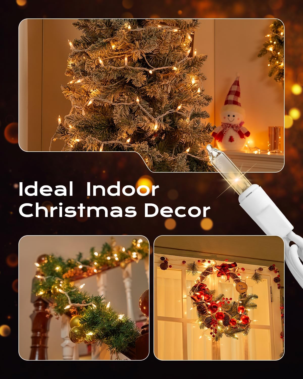 - 【Festive Mini Christmas Lights Set】This set includes 200 transparent incandescent mini-lights on 51.5 ft white wire, with bulbs spaced 3-inche apart and 18-inch lead wire. Perfect for holiday decorating, with the ability to connect up to 2 light strings end-to-end;