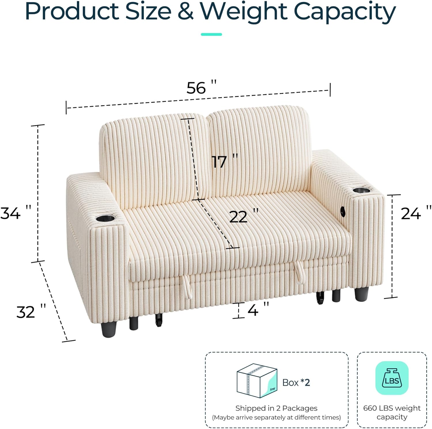 - NOTE: The sofa comes in two boxes and may arrive at different times