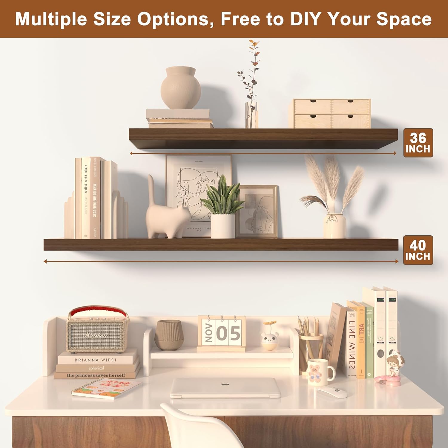 - ăExtra Deep 12" Storageă- These deep floating shelves for wall provide 12-inch depth for generous storage of books, decor, and kitchen essentials. Their expanded surface area maximizes organization while keeping items within easy reach. Perfect for displaying collectibles or storing daily necessities!