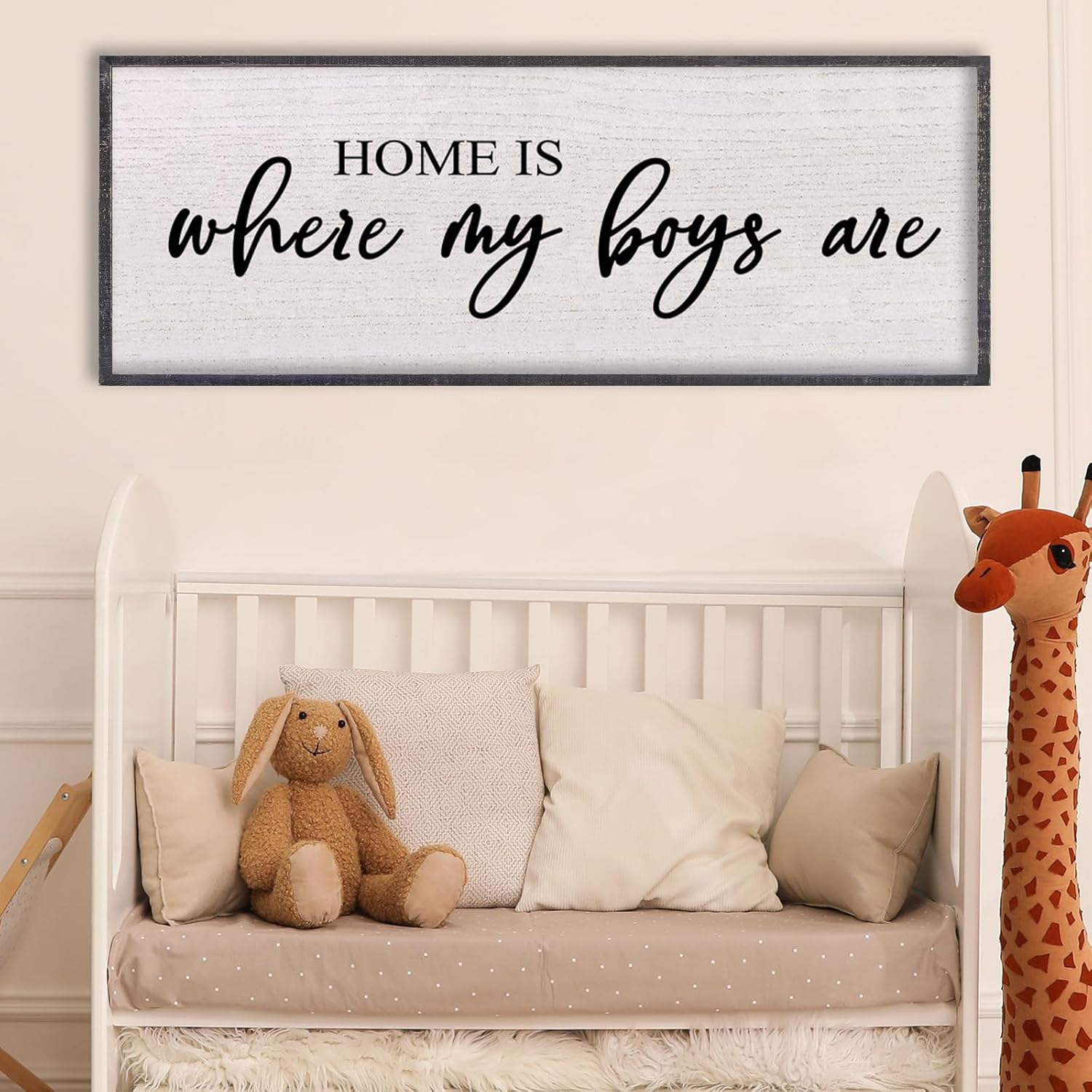 Home Is Where My Boys Are Wall Decor 32"×12" mom and her boys Sign for boys room Playroom Large Wood Framed Wall Hanging Art (Black)