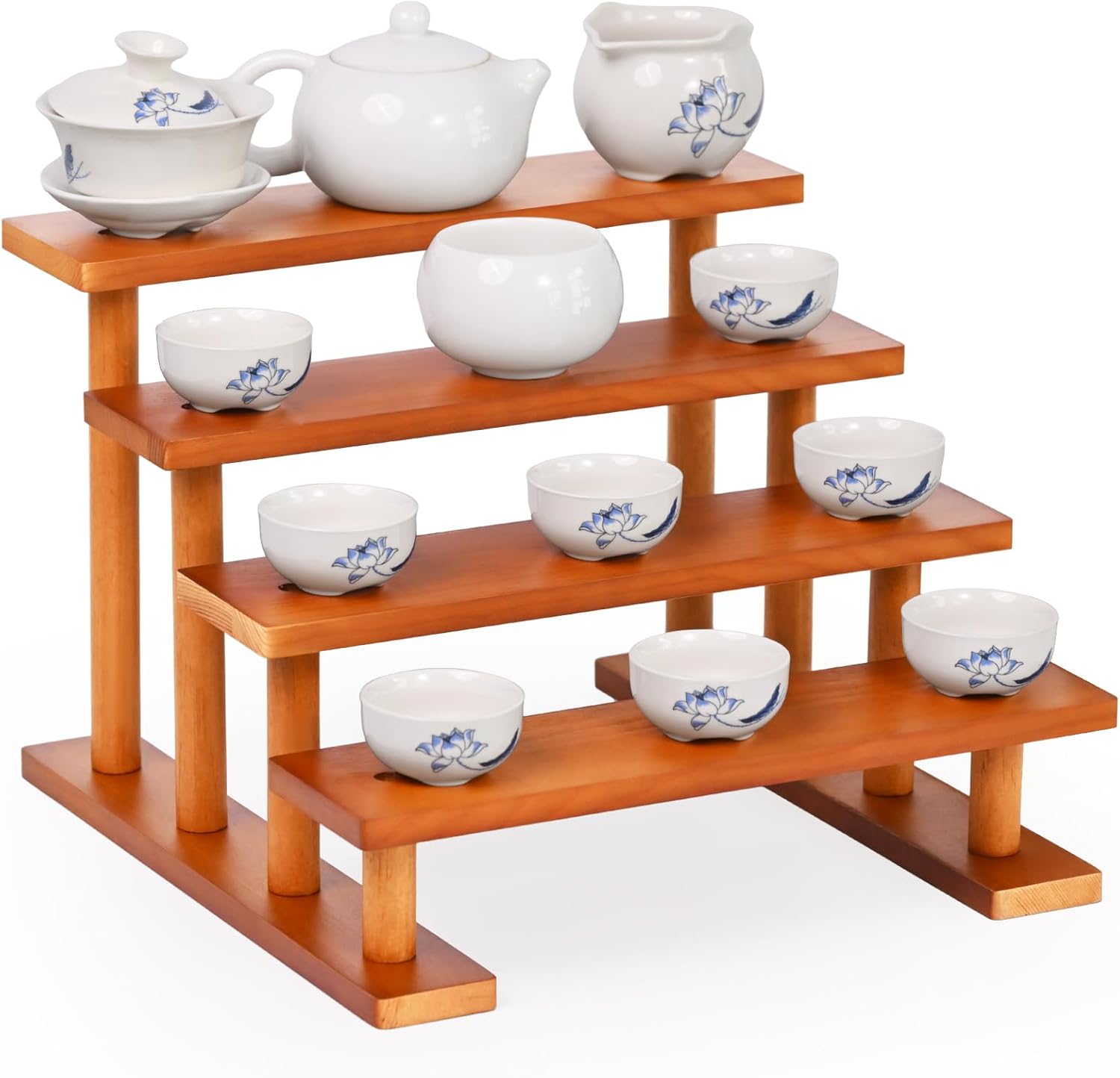 4 Tier Wooden Display Riser Stand Perfume Organizer, Dessert Table Display Set, Solid Wood Food Display Stands for Party, Bamboo Rustic Solid Wood Shelf for Cupcakes, Perfume, Cologne, Spiece