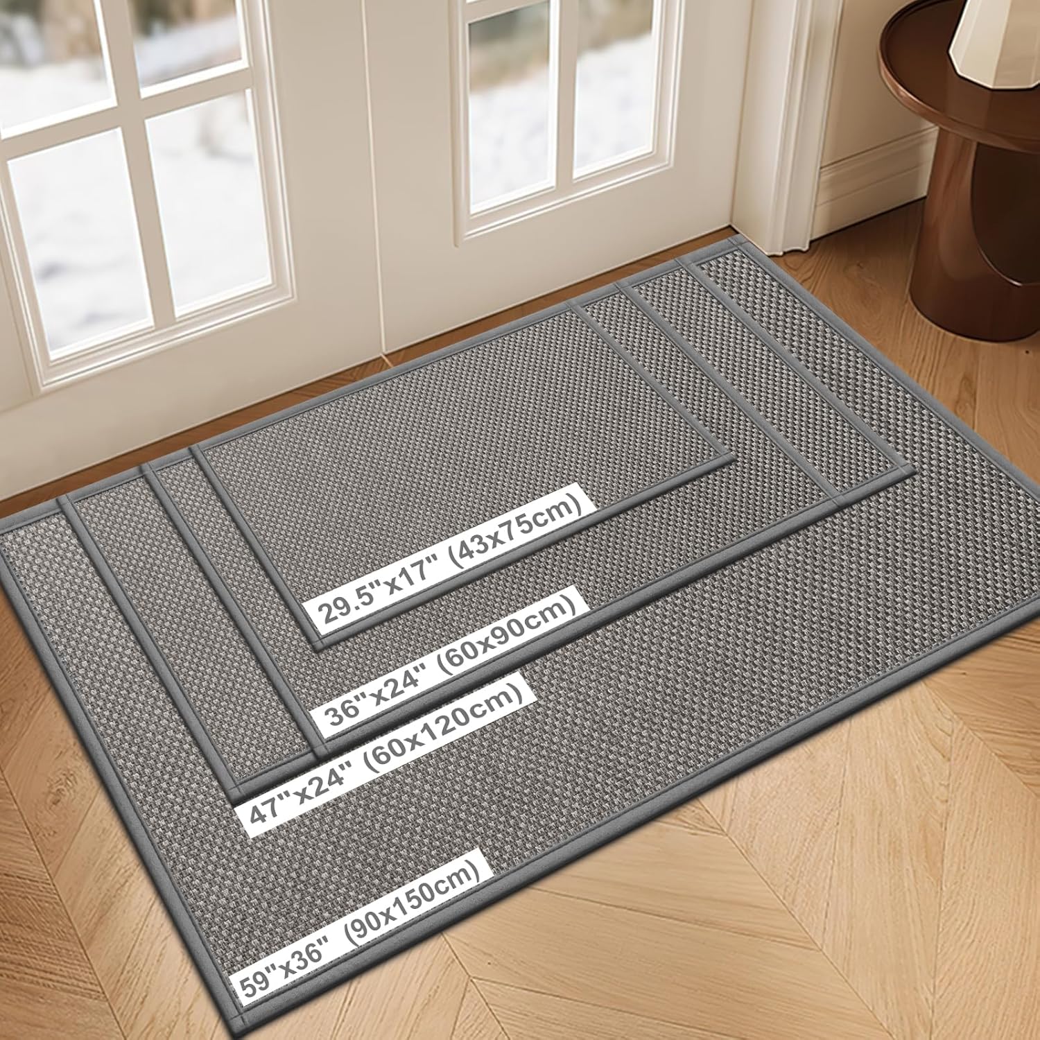 LEKEEPGO Door Mat 17"x29", Non Slip Door Mat Indoor Entrance, Rubber Backing Front Indoor Door mat Washable Absorbent Low-Profile Entryway Entry Resist Dirt Inside Door Mats, Light Grey