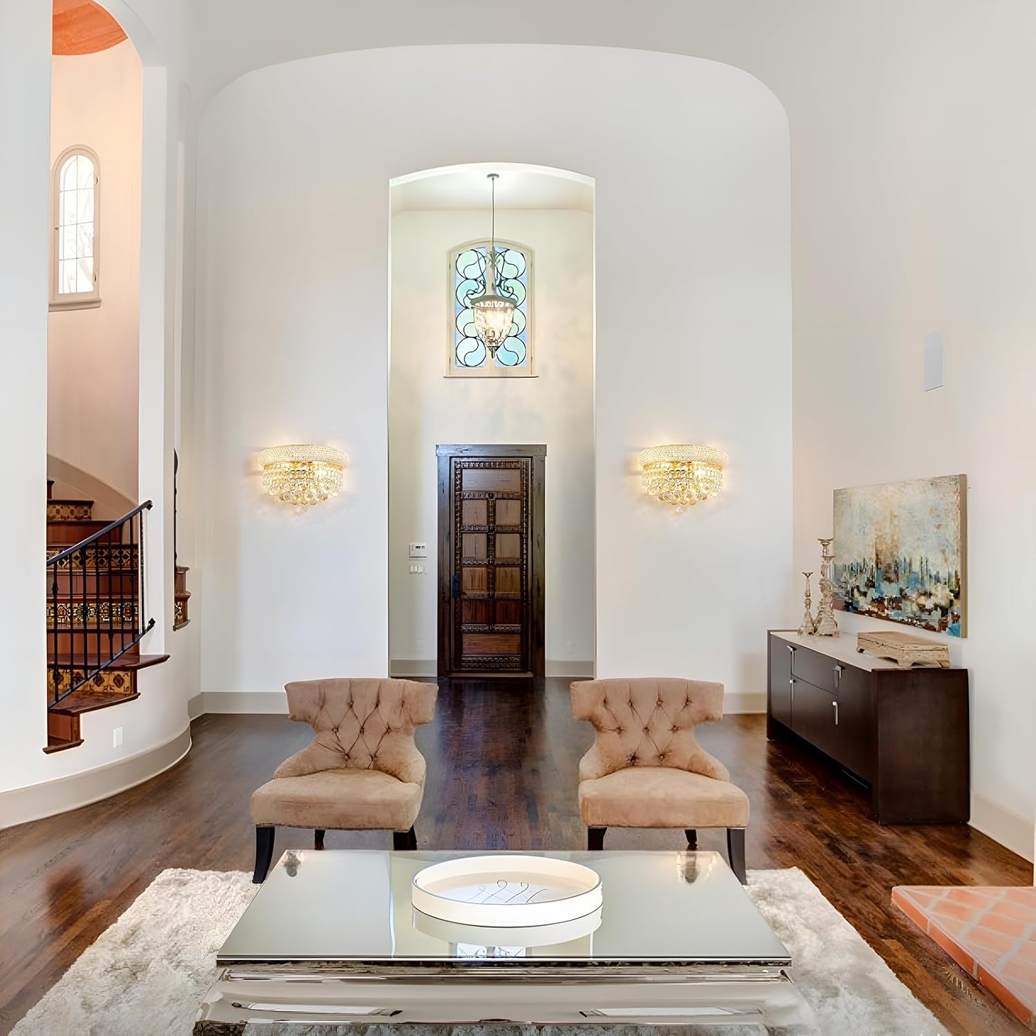 Empire Crystal Wall Sconces, Gold Wall Light Fixtures, Luxury Wall Lamp for Living Room Bedroom Bathroom Bedside Hallway Stairway