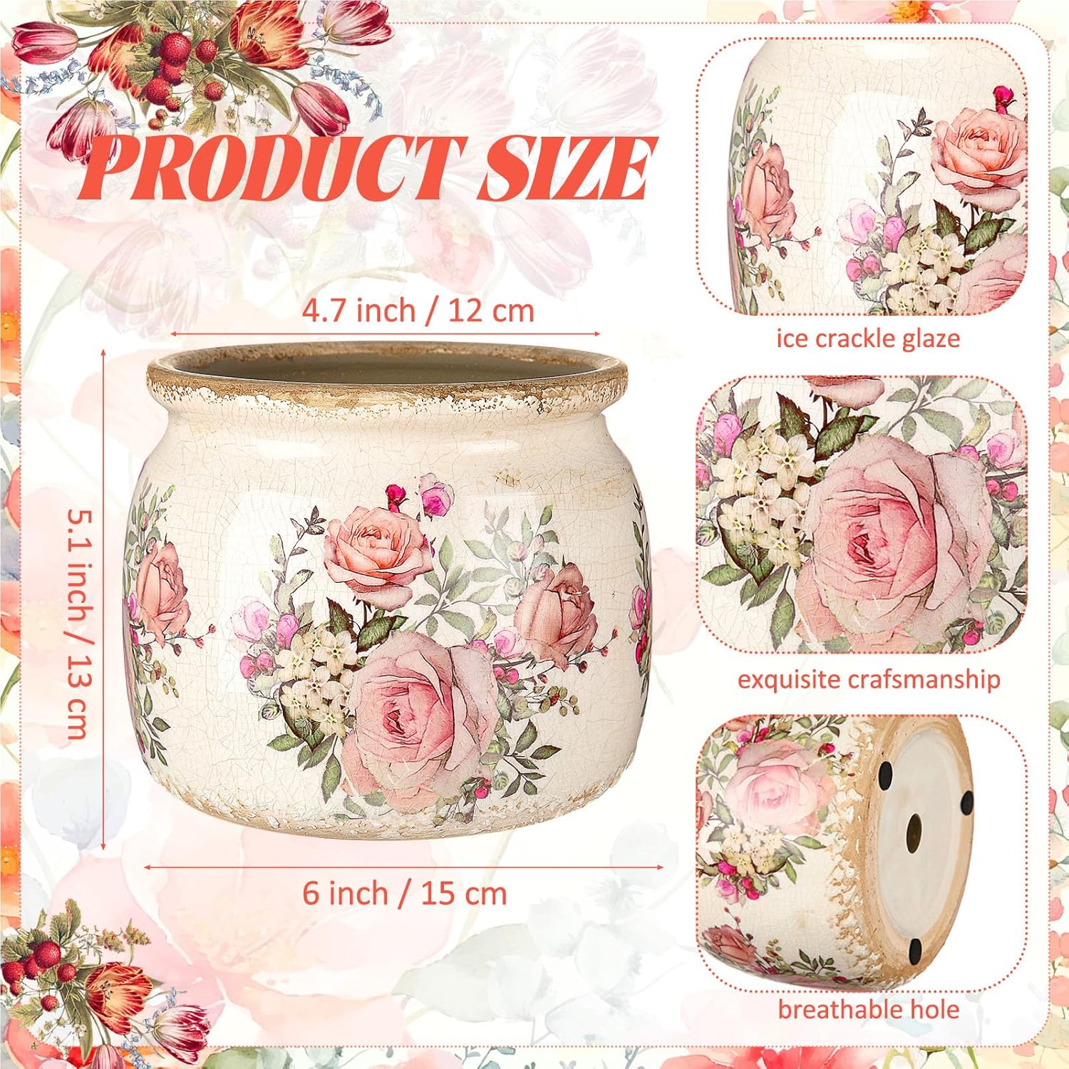 - Vintage Flower Pot: you will get 1 beige and orange ceramic planter, which crafted with a distressed scroll shape and European rose pattern, adding a rustic farmhouse vibe to both modern and traditional decor styles; Note: plants not included