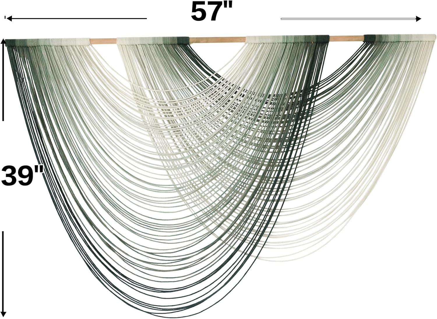 Macrame Wall Hanging Green Yarn Art Dip-Dye Boho Wall Decor Fiber Wall Art Craftsmanship Home Decor 57" W x 39" L