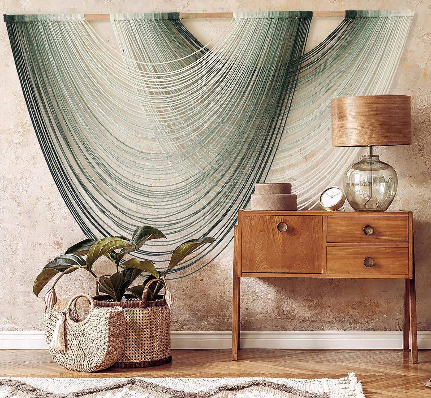 - Style:Macrame wall hanging, large wall tapestry, green yarn wall art, handmade boho home decor, dip-dye fiber wall art, bohemian bedroom decor. Handcrafted boho chic design adds texture and trendy charm to bedrooms, nurseries, or living rooms.