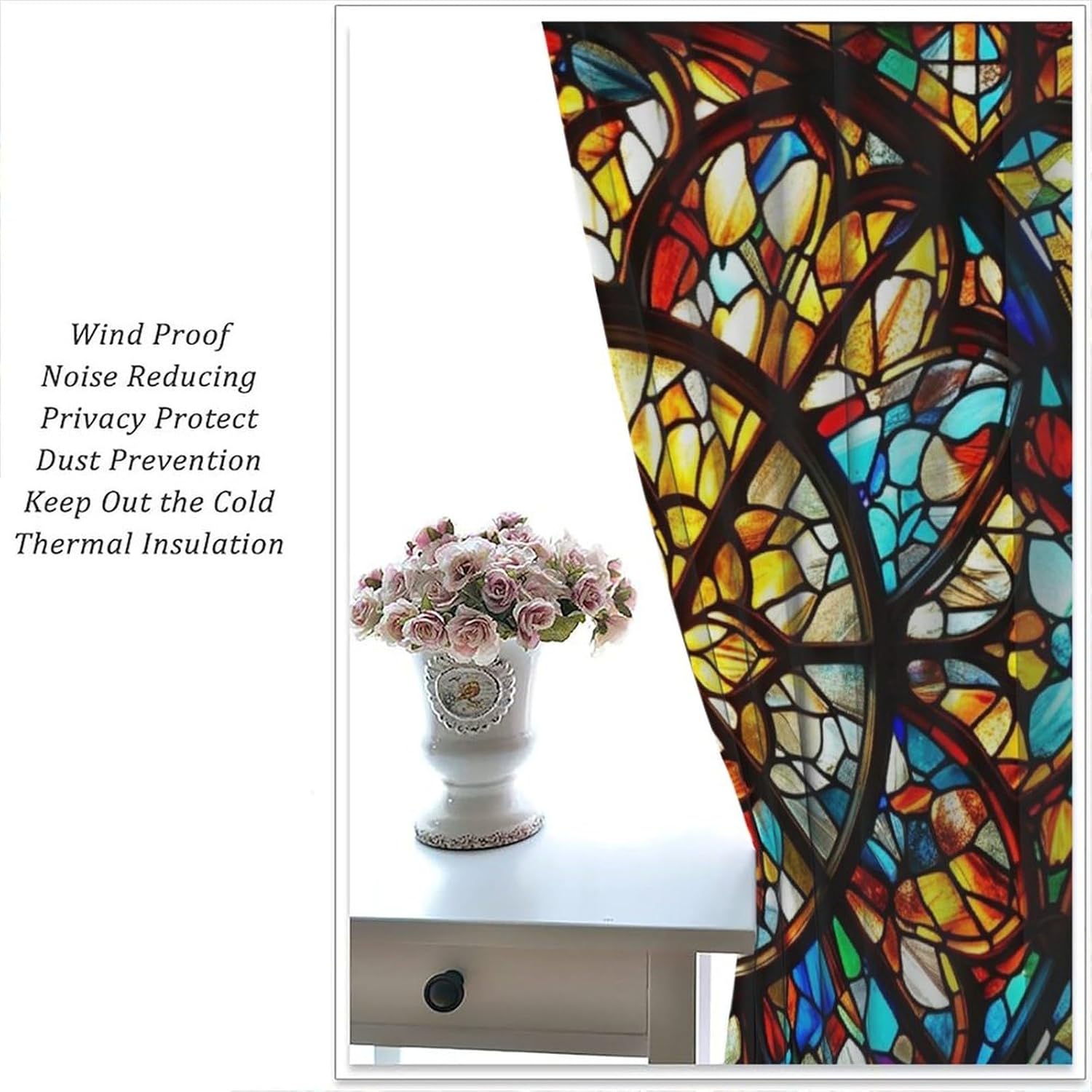 Stained Glass Curtains,Retro Mid Century Abstract Colorful Geometric Prints Home Decor Drapes for Bedroom Living Room Kitchen Window Treatment 2 Panels Set Total Size 42" W X 54" L Inch