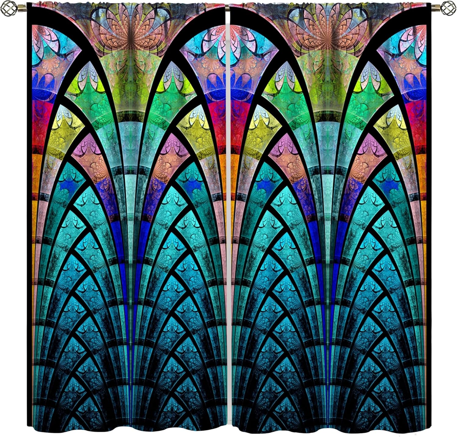Stained Glass Curtains,Retro Design Style Colorful Abstract Art Home Decor Drapes for Bedroom Living Room Kitchen Window Treatment 2 Panels Set Total Size 63" W X 63" L Inch