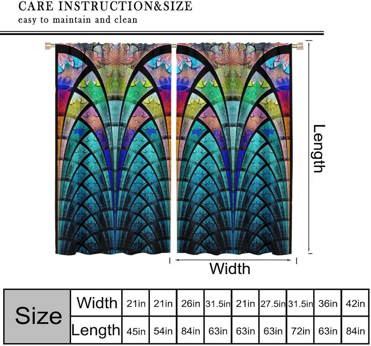 Stained Glass Curtains,Retro Design Style Colorful Abstract Art Home Decor Drapes for Bedroom Living Room Kitchen Window Treatment 2 Panels Set Total Size 72" W X 63" L Inch