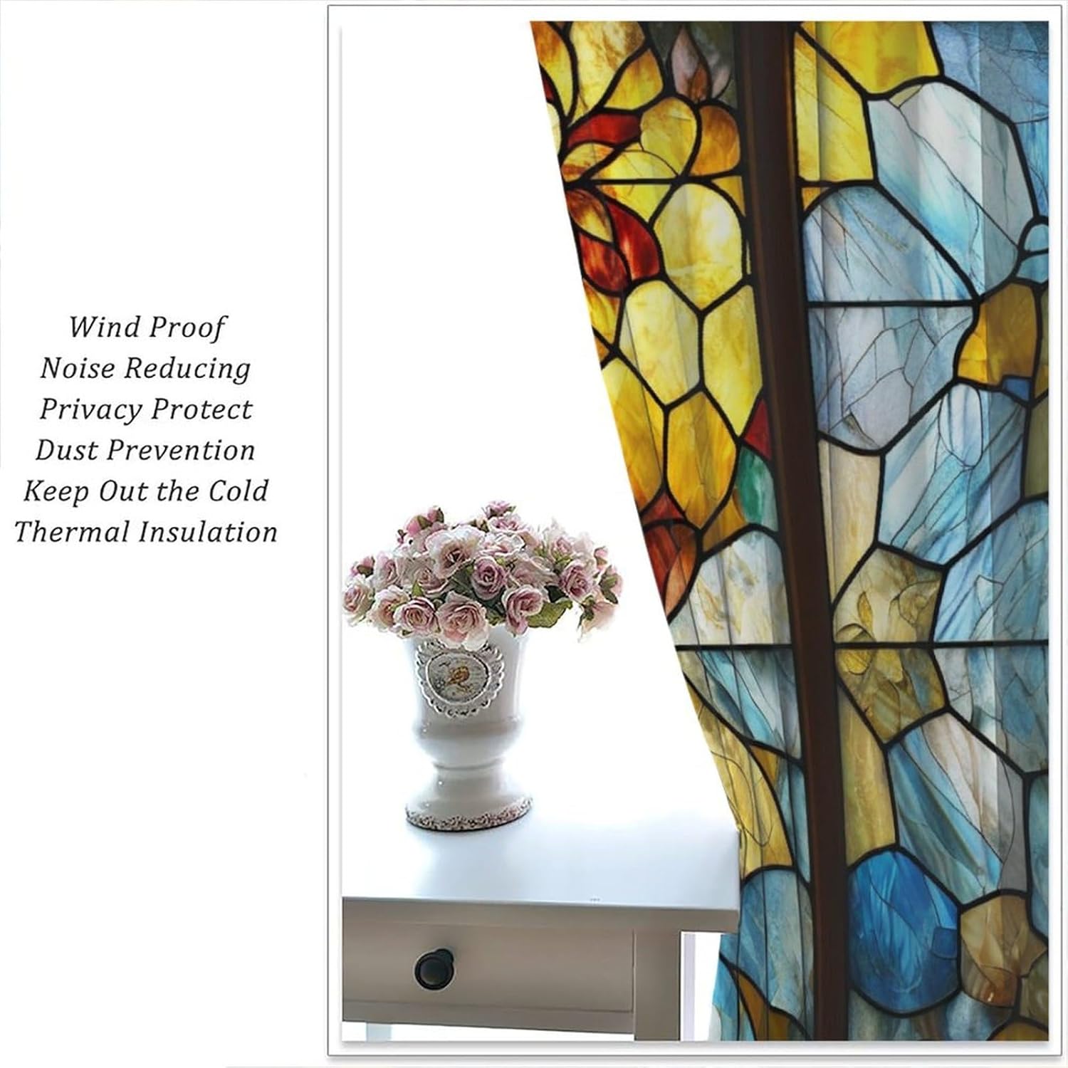 Stained Glass Curtains,Retro Abstract Colorful Art Home Decor Drapes for Bedroom Living Room Kitchen Window Treatment 2 Panels Set Total Size 72" W X 63" L Inch