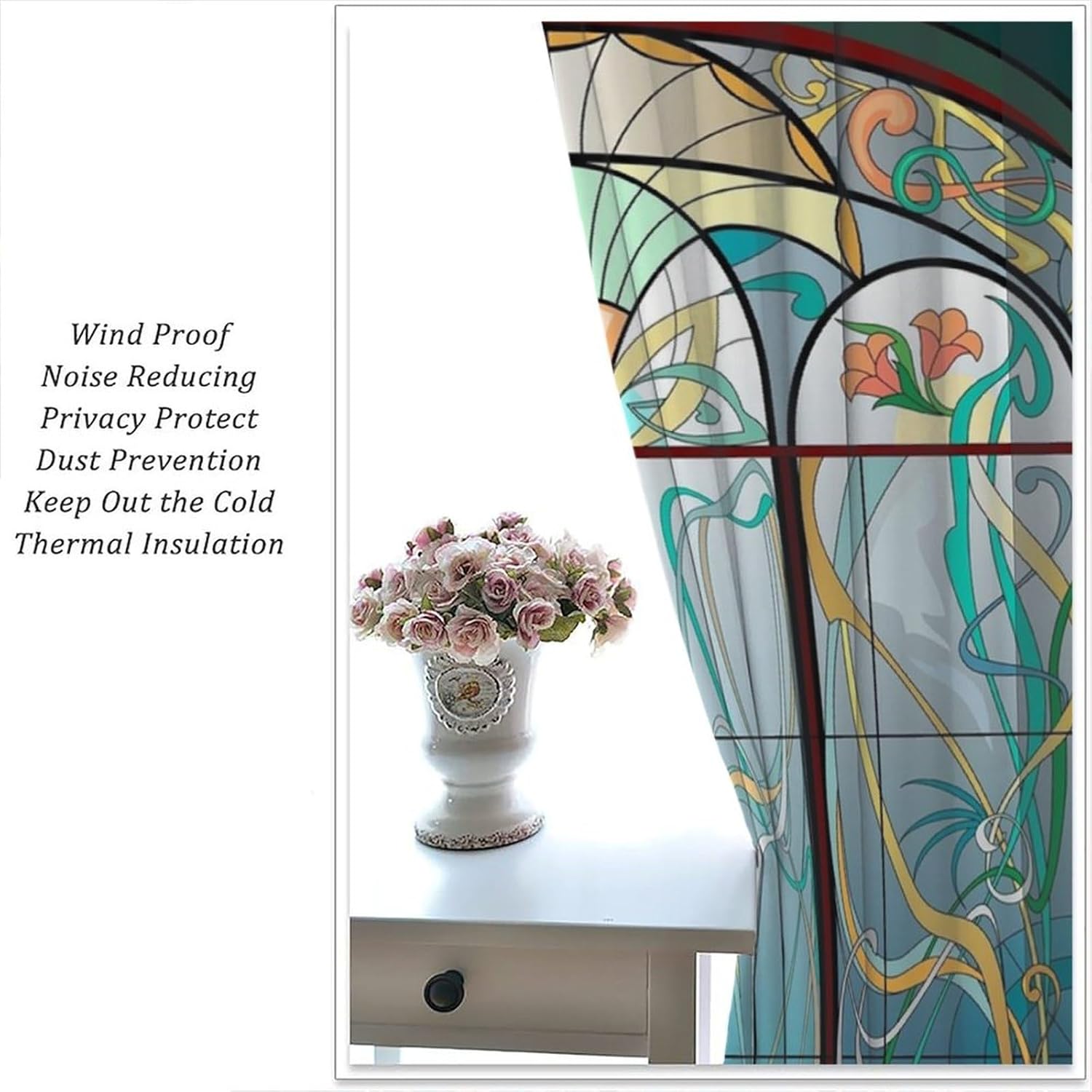 Stained Glass Curtains, Retro Mid Century Boho Abstract Art Home Decor Drapes for Bedroom Living Room Kitchen Window Treatment 2 Panels Set Total Size 42" W X 63" L Inch