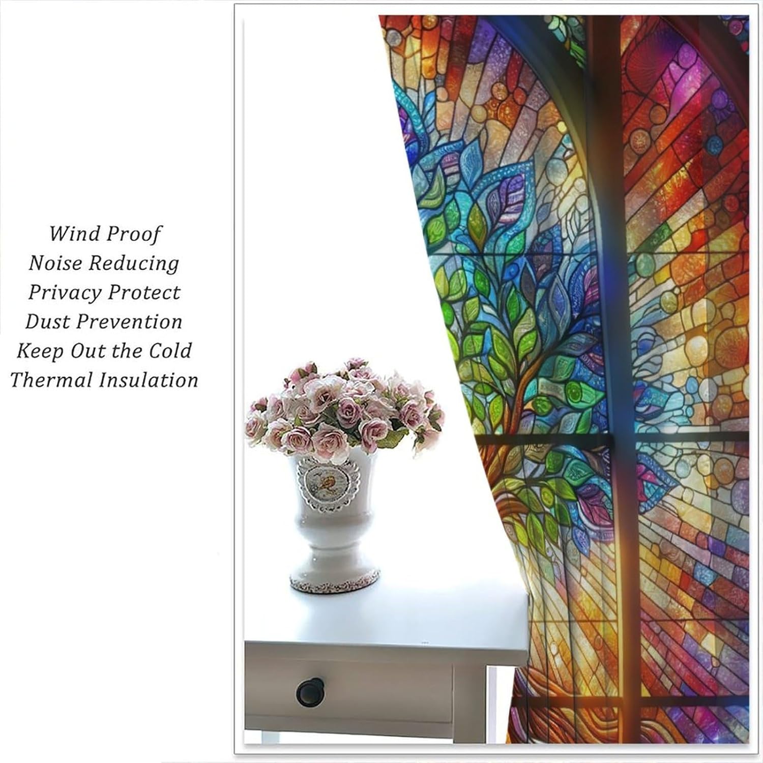 Stained Glass Curtains,Tree of Life Colorful Abstract Art Home Decor Drapes for Bedroom Living Room Kitchen Window Treatment 2 Panels Set Total Size 55" W X 63" L Inch
