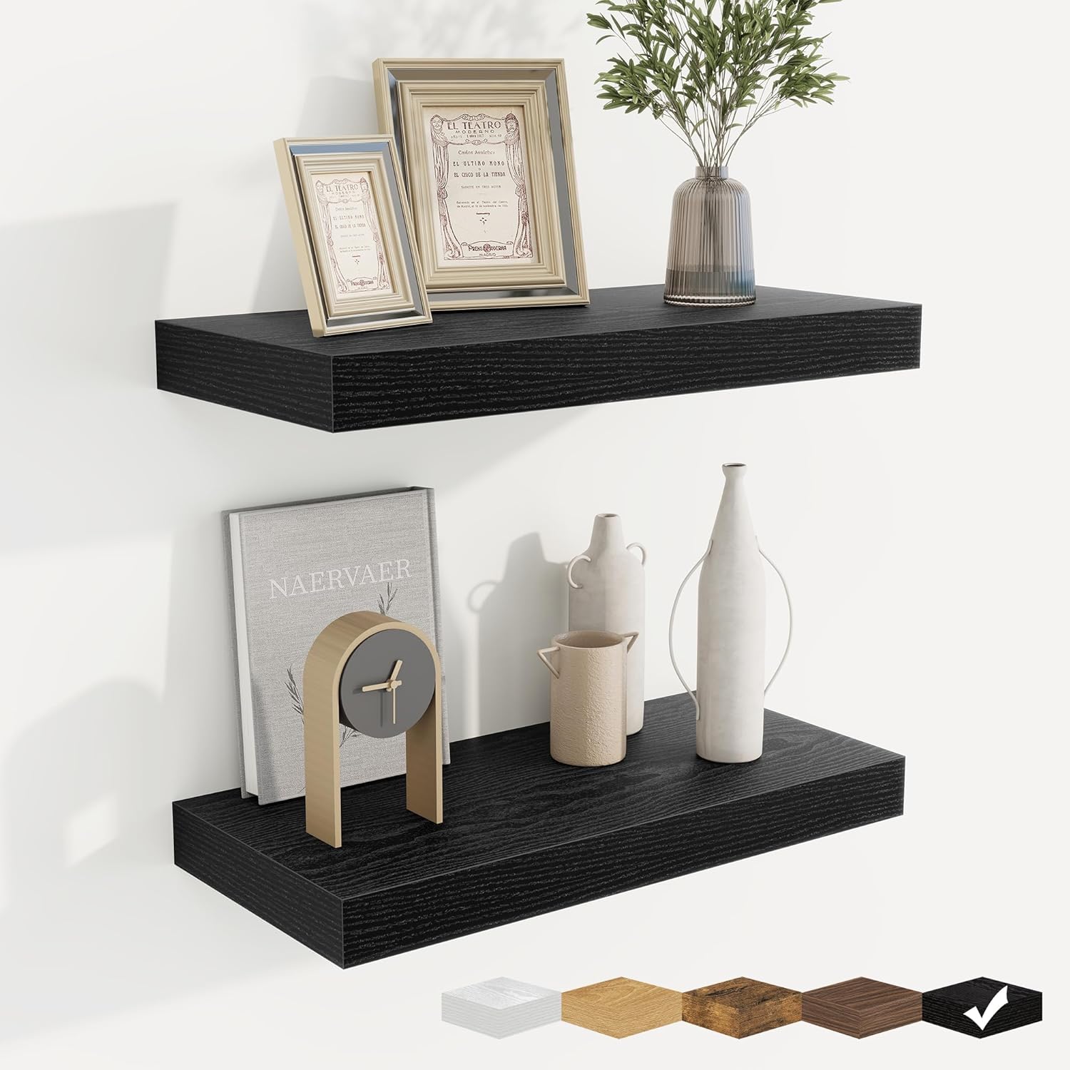 - Well-designed Floating Shelves: Our floating shelves for wall are made of premium engineered wood with a realistic wood grain finish. The rustic wood grain adds warmth and character to any modern or traditional interior. It can organize everyday clutter and make your space tidier, and make it full of aesthetic flare