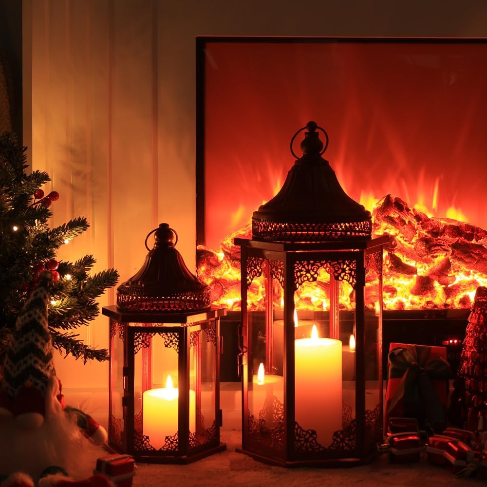 • 【Safe, Windproof & Endlessly Creative】-Featuring six transparent glass panels on each lantern, the design shelters the flame from wind and rain, allowing for the safe use of real flame candles indoors or out(Caution: Top gets hot when lit). For a modern twist, the spacious interior invites you to DIY with Led candles, festive ornaments, or pine cones to create your own unique display.