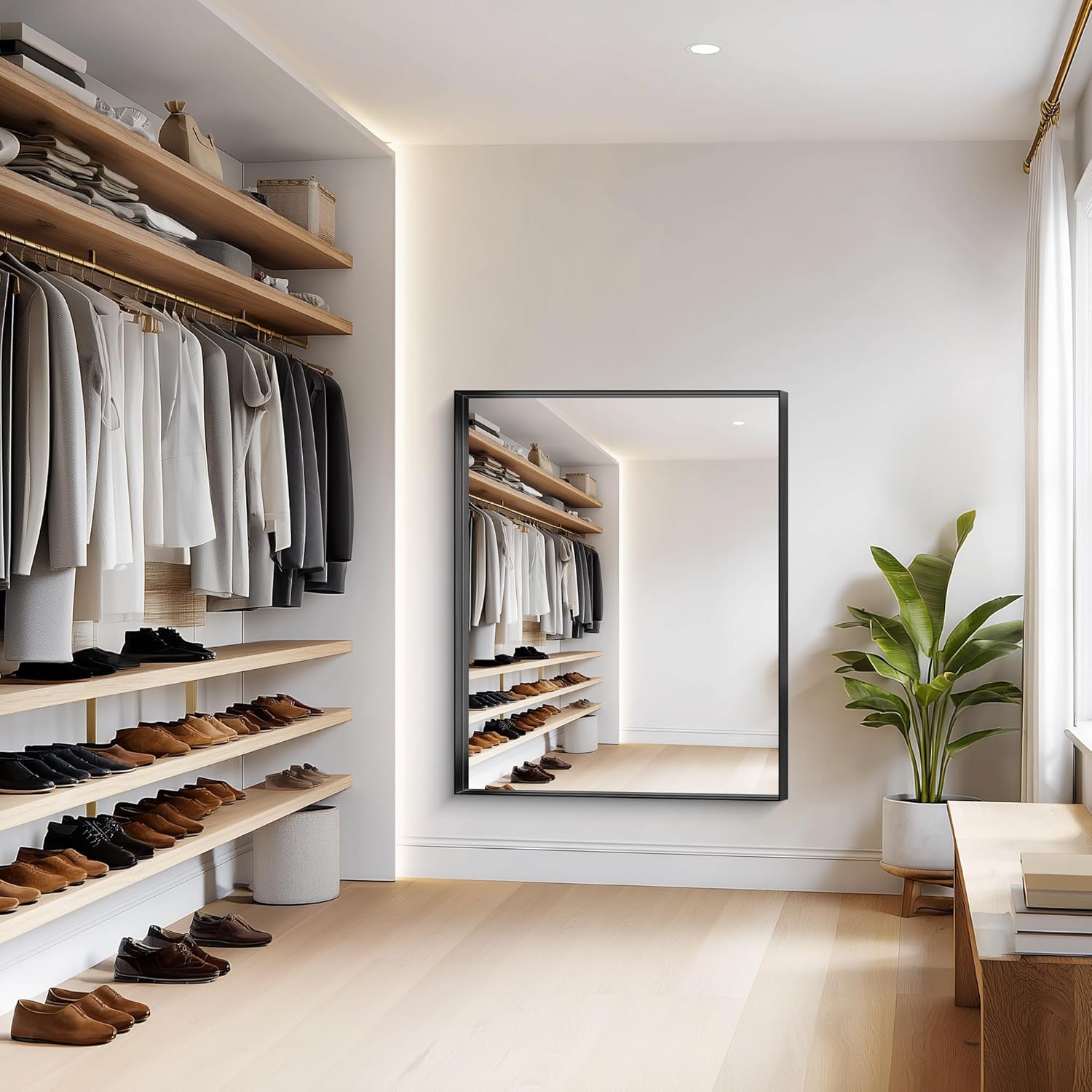- Crystal-Clear Reflection, Zero Distortion: This black wall-mounted bathroom mirror delivers a true 1:1 image reflection—no blurring, warping, or distortion. The ultra-durable glass is scratch-resistant and easy to clean, making it the perfect vanity mirror for a sleek, modern bathroom.