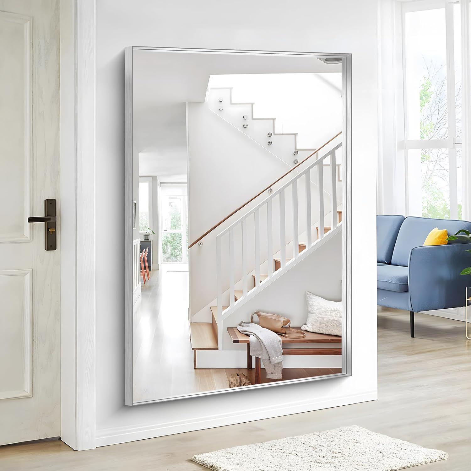 - Crystal-Clear Reflection, Zero Distortion this silver wall-mounted bathroom mirror delivers a true 1:1 image reflection—no blurring, warping, or distortion. The ultra-durable glass is scratch-resistant and easy to clean, making it the perfect vanity mirror for a sleek, modern bathroom