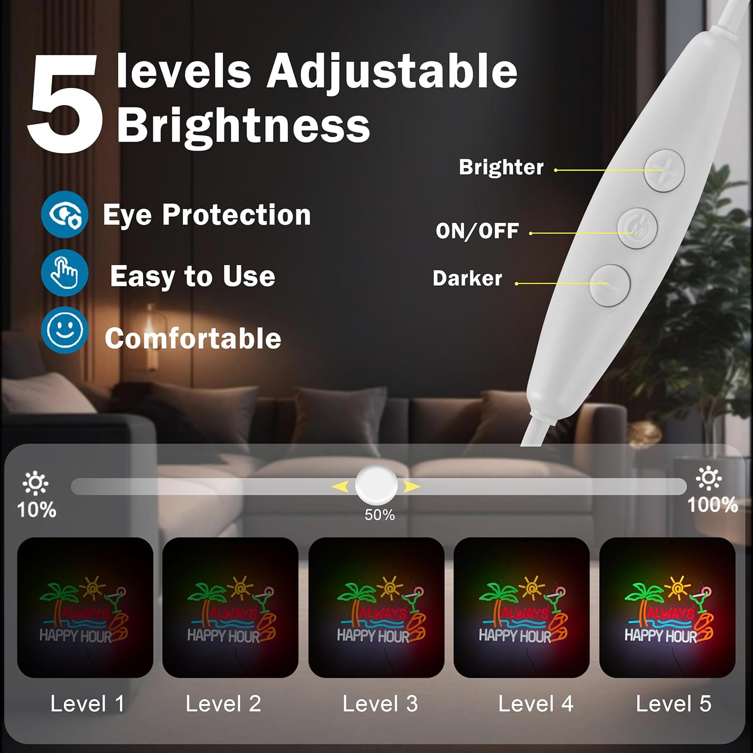 Always Happy Hour Beer Bar Neon Sign for Wall Décor Dimmable USB LED Neon Light for Home Tiki Bar Decor Man Cave Parties Gift
