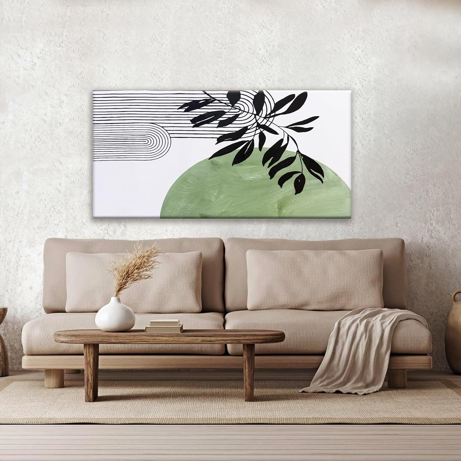 TAIJXAGSG Abstract Boho Green Wall Art Modern Canvas Art Wall Decor Artwork Abstract Wall Decor Minimalist Canvas Painting Prints Picture For Bedroom Bathroom Office Wall Artwork 20"X40"