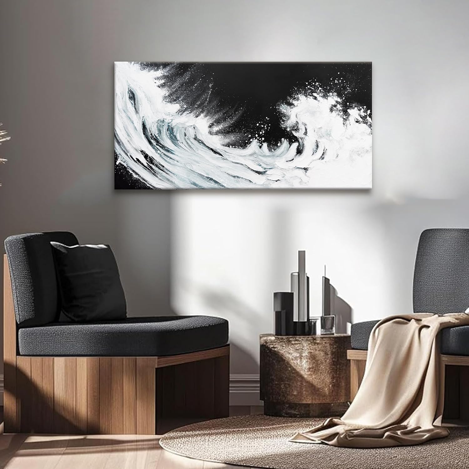 TAIJXAGSG Black And White Abstract Wall Art Painting Canvas Art Wall Decor 20x40 Inch Decorations White Ocean Waves Wall Art Canvas Abstract Art Picture For Bedroom Kitchen Office Home Decor