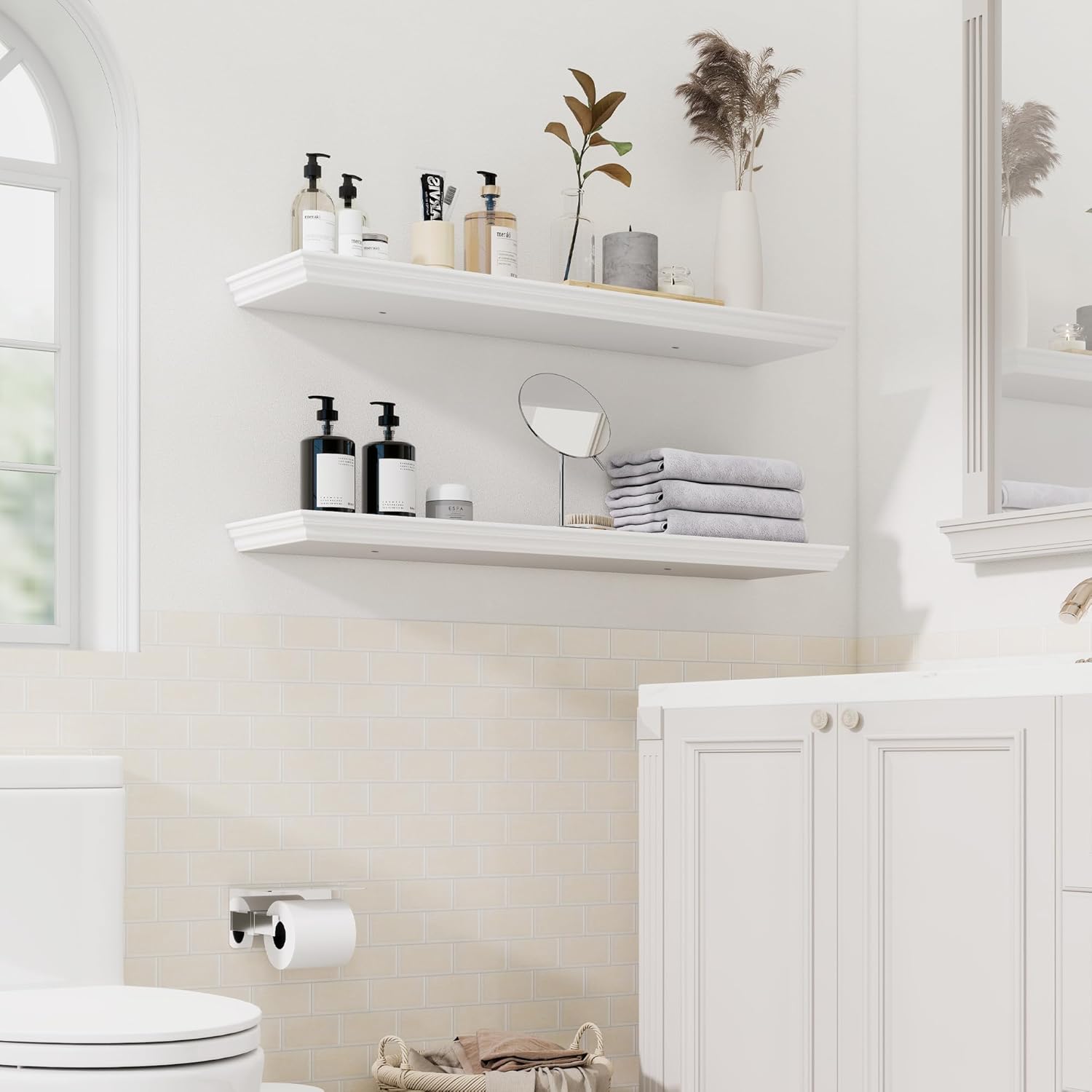 - Modern Chic Shelves for Room Wall: Our decorative white wall mounted shelves(repisas flotantes de pared) provide a great vintage classic look that will blend well with modern and rustic farmhouse wall decor alike