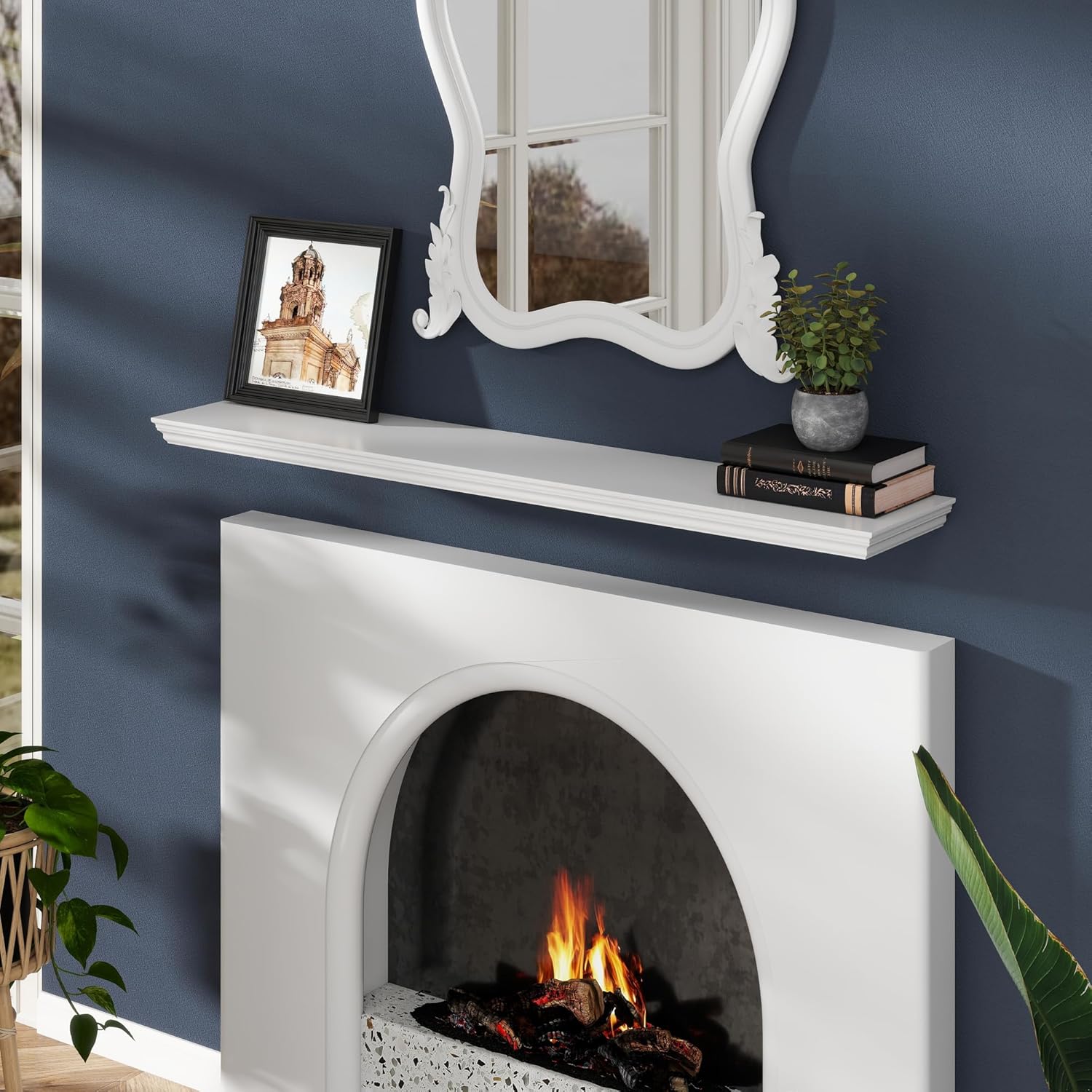 Floating Shelves for Wall, 48 Inch Long Wall Mounted White Hanging Shelf for Kitchen, Living Room, Office, Bedroom, Bathroom, Retro Vintage Wood Bookshelf for House Decor