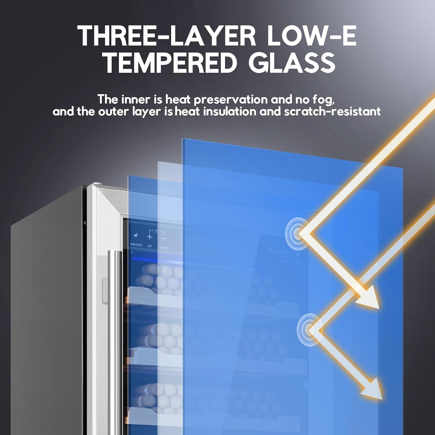 - ăReversible Door Design & Low-E GlassăThe door frame and handle of the Cigar humidor are made of stainless steel, highlighting the elegance and nobility. The reversible door design allows you to adjust the opening direction according to your preference. The Low-E composite coating between the two tempered glass panes and the microcellular high-pressure foamed insulation provide superior thermal insulation. Built-in LED blue light is convenient for you to check the cigar's status. Energy saving design, power consumption is ïŒ 0.28 kWh/24 hours, cost is ïŒ 0.06/day.