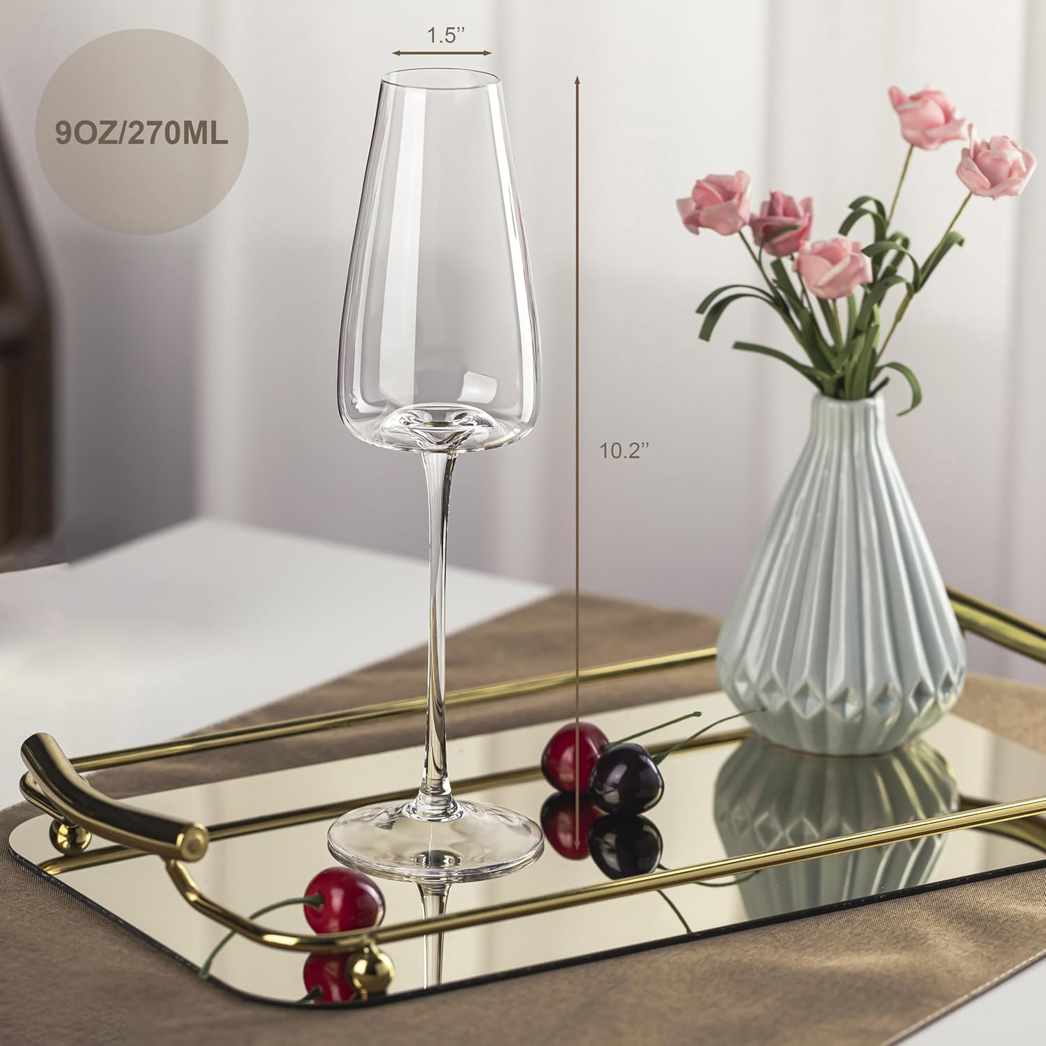 Champagne Flutes Glass Set of 4,Crystal Champagne Glasses 9OZ/ 270ML, Hand Blown Mimosa Glasses, Unique Champagne Gift for Wedding, Engagement Gift