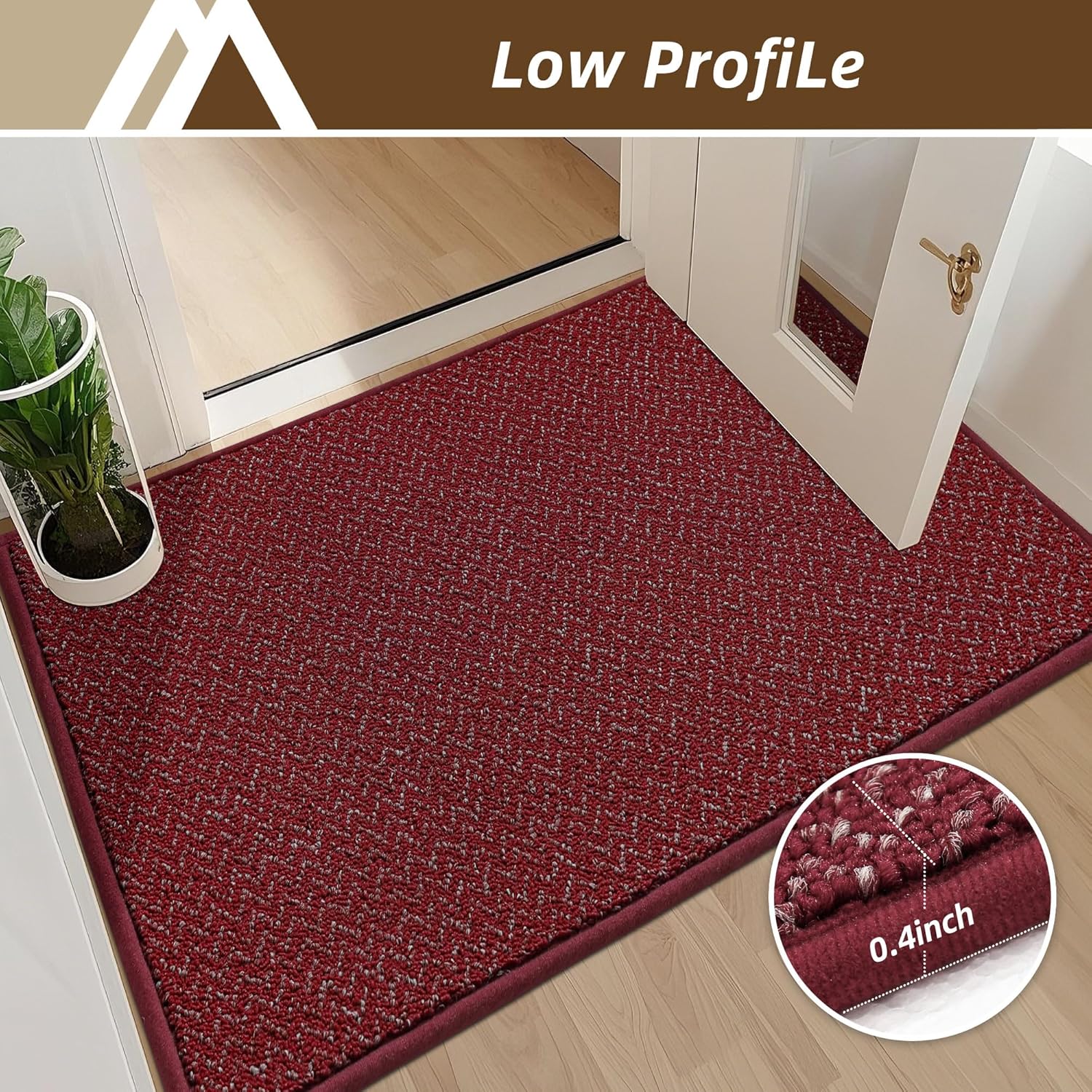 - LOW PILE AND TOUGH:A 0.4β low-pile let the door open easily over it without jamming or curling.Tightly woven Polypropylene fibers and reinforced overlock binding edges withstand daily wear.If the welcome mat you received has creases, don't worry, the creases will disappear after a few days of use, you can also put a wet towel on the creases and iron them with an iron to eliminate the creases