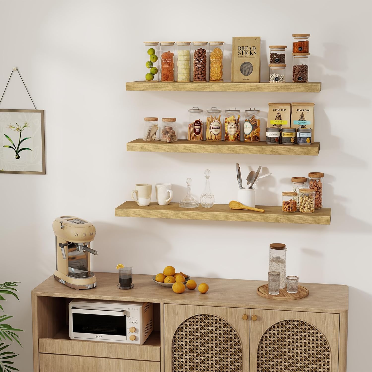 Fun Memories 36 x 8 Inch Floating Shelves for Wall, Farmhouse Bathroom Shelves Set of 2, Wood Wall Shelves 36 Inch Long, 36 x 8 x 1.4 Inch, Oak Color