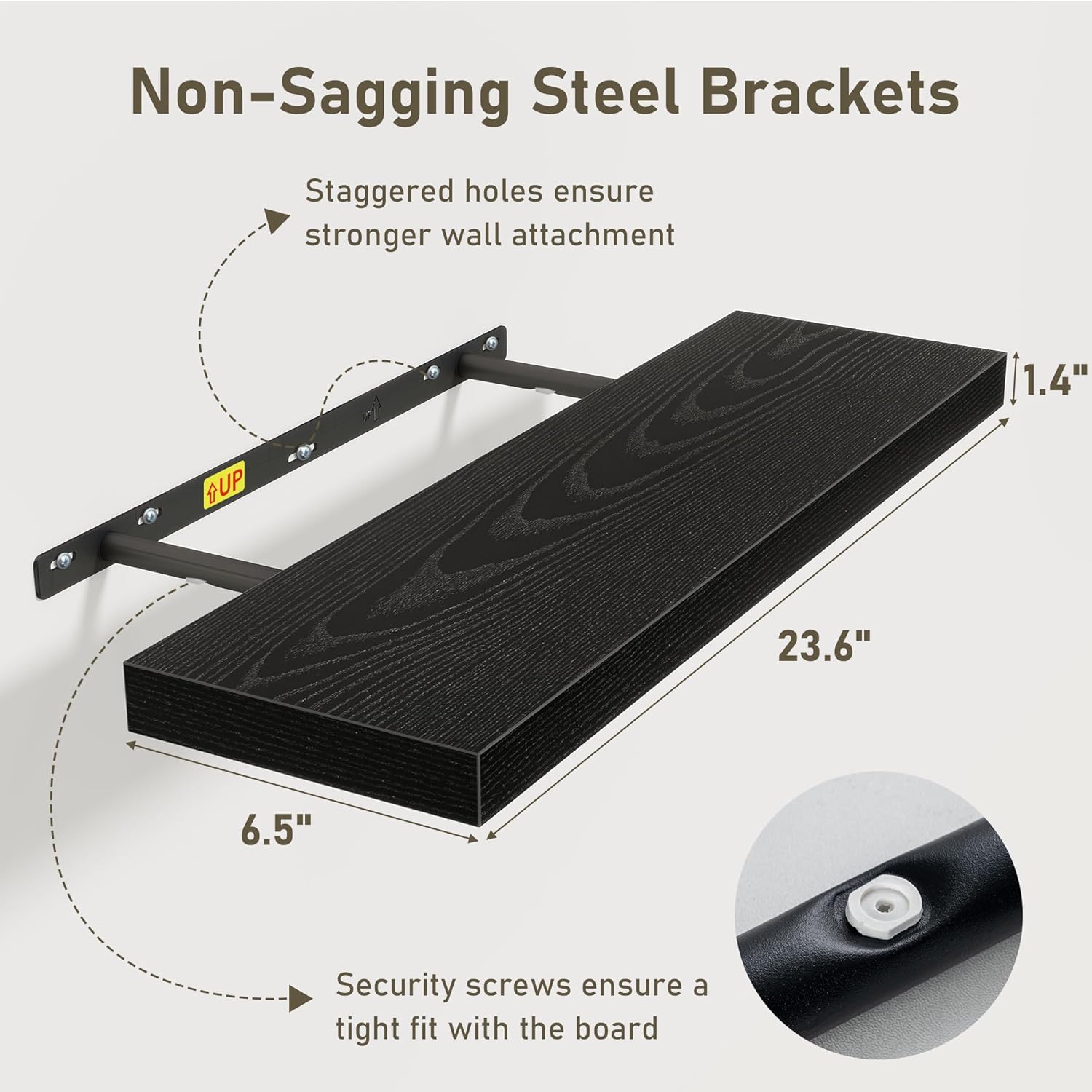 - Easy To Assemble: This floating shelves not only come with stainless-steel galvanized invisible brackets, but also equipped a fixing screw at the bottom to fix the shelf on the support rod, which solves the problem of sliding and is not easy to damage, and can be used for a long time. Instructions, magnetic level, drywall anchors, and screws included. This is great because you can easily mount these rustic shelves Gap-Free to any surface in less than 10 minutes