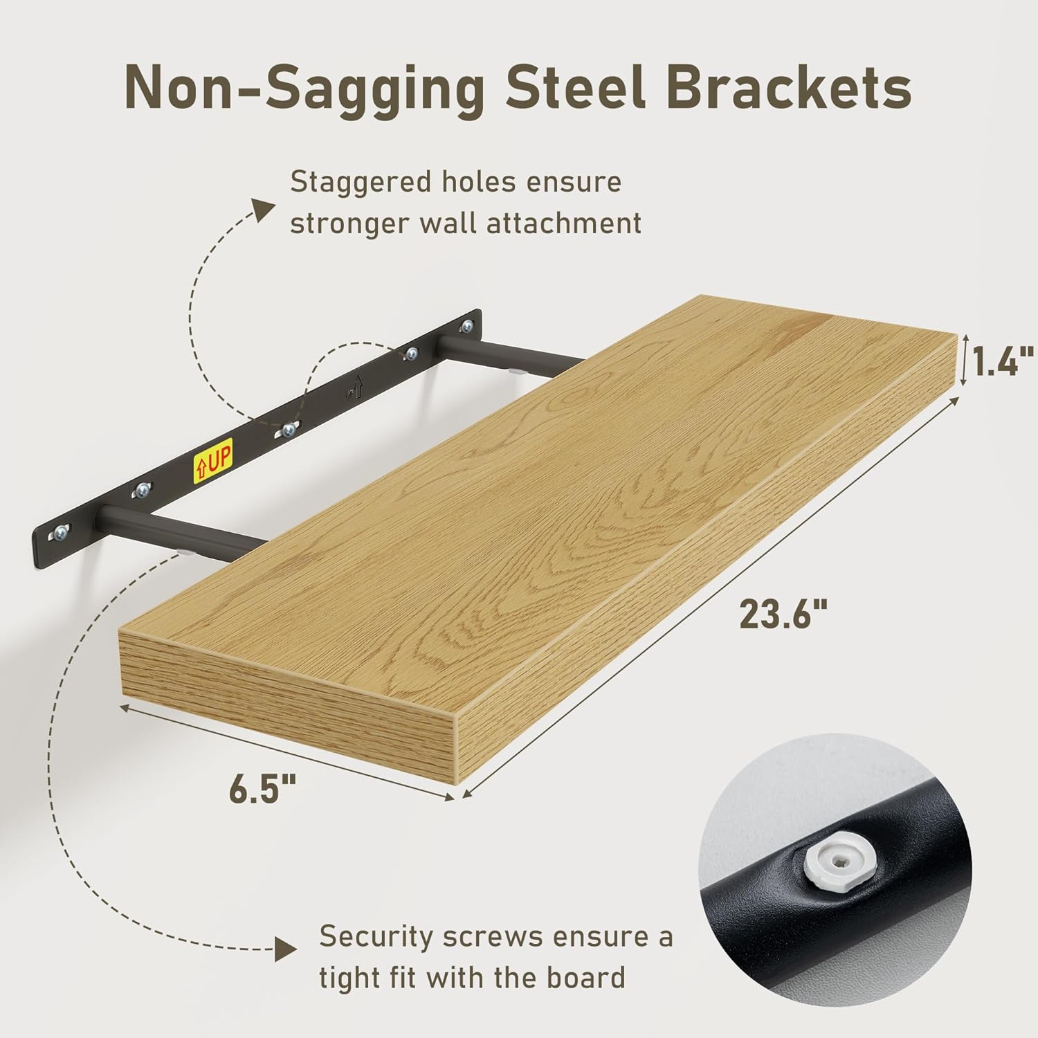 - Easy To Assemble: This floating shelves not only come with stainless-steel galvanized invisible brackets, but also equipped a fixing screw at the bottom to fix the shelf on the support rod, which solves the problem of sliding and is not easy to damage, and can be used for a long time. Instructions, magnetic level, drywall anchors, and screws included. This is great because you can easily mount these rustic shelves Gap-Free to any surface in less than 10 minutes